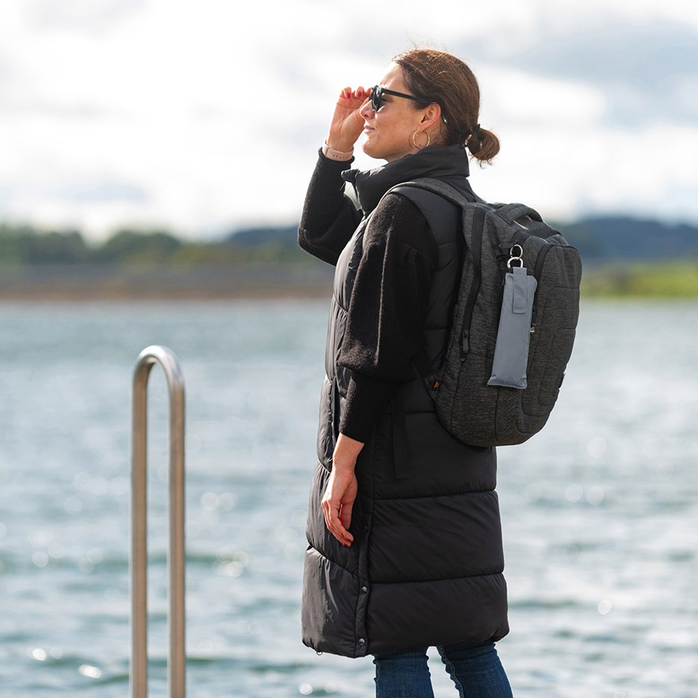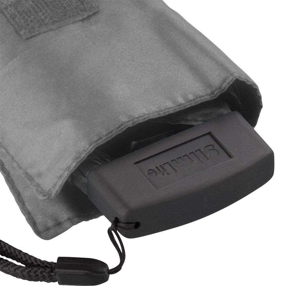 Ultralight manual opening mini pocket umbrella in a convenient carry case with snap hook High-quality Windproof PLUS system for maximum frame flexibility in stormy conditions, chromed steel shaft, extra lightweight cover, flat Soft-Touch handle with promotional labelling option, carry case with practical snap hook for fixing on backpack or bag, suitable for handbag due to its extreme light weight, space-saving extra flat execution