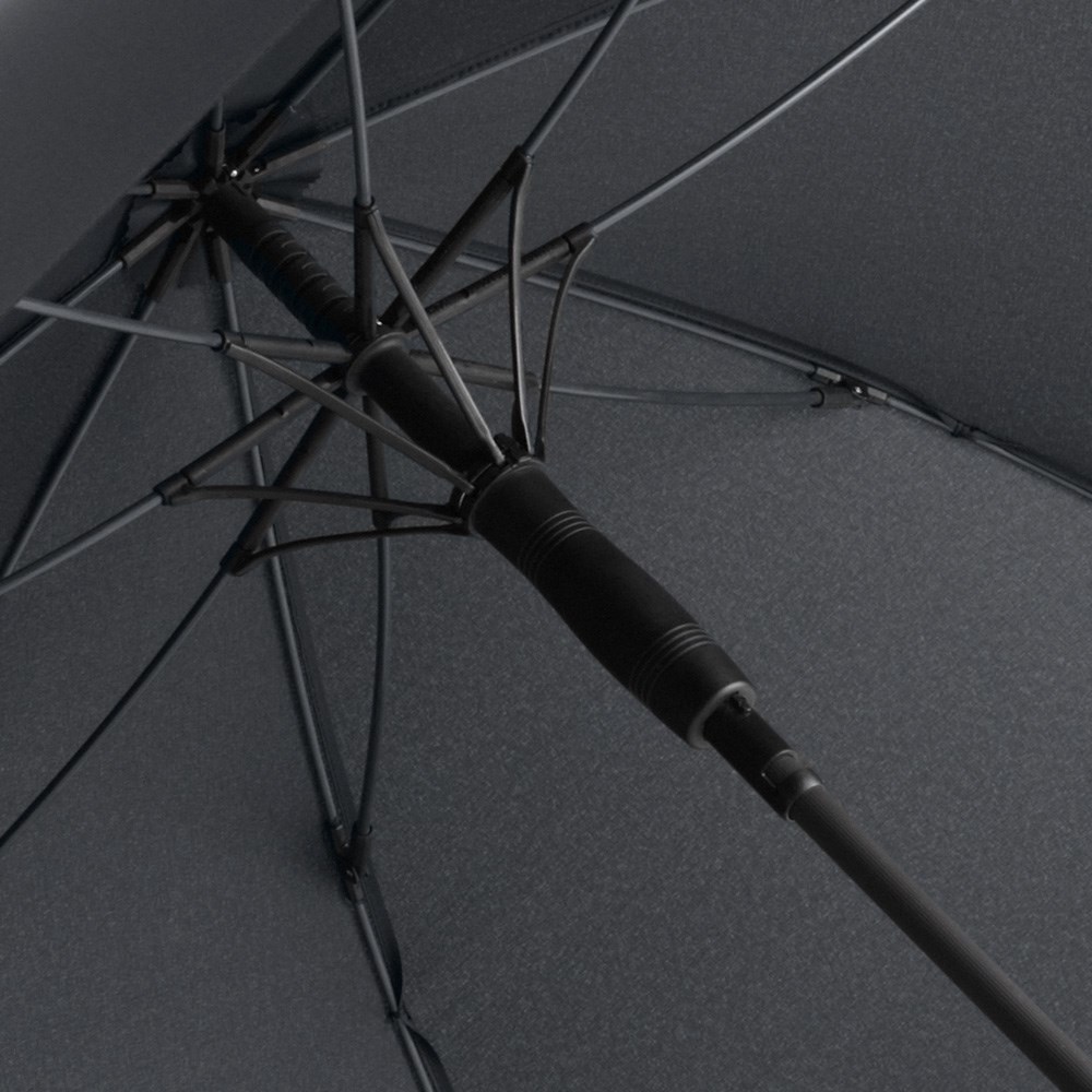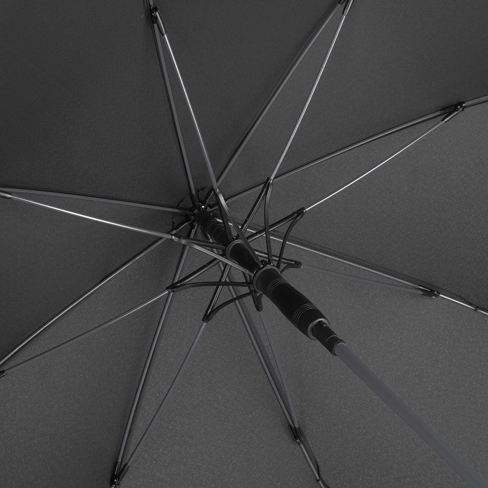 Stylish automatic umbrella in medium size with coloured shaft and coloured ribs Convenient automatic function for quick opening, high-quality Windproof PLUS system for maximum frame flexibility in stormy conditions, flexible fibreglass ribs, stable steel shaft with coloured plastic tube, polyester pongee material made of recycled plastics, eco-friendly thanks to original waterSAVE cover material, with waterSAVE® label on the closing strap, shapely Soft-Feel crook handle with colored handle rings, integrated push-button and promotional labelling option. Also available as mini umbrella (art. 5084, 5484, 5584) and as golf umbrella (art. 2384). Awarded with Promotional Gift Award 2016.