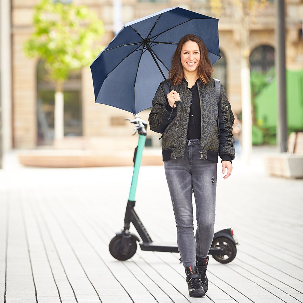 Attractively priced automatic open/close pocket umbrella with Windproof PLUS system Convenient automatic open/close function for quick opening and closing, high-quality Windproof PLUS system for maximum frame flexibility in stormy conditions, comfortable Soft-Feel handle with integrated push-button, elastic loop and promotional labelling option