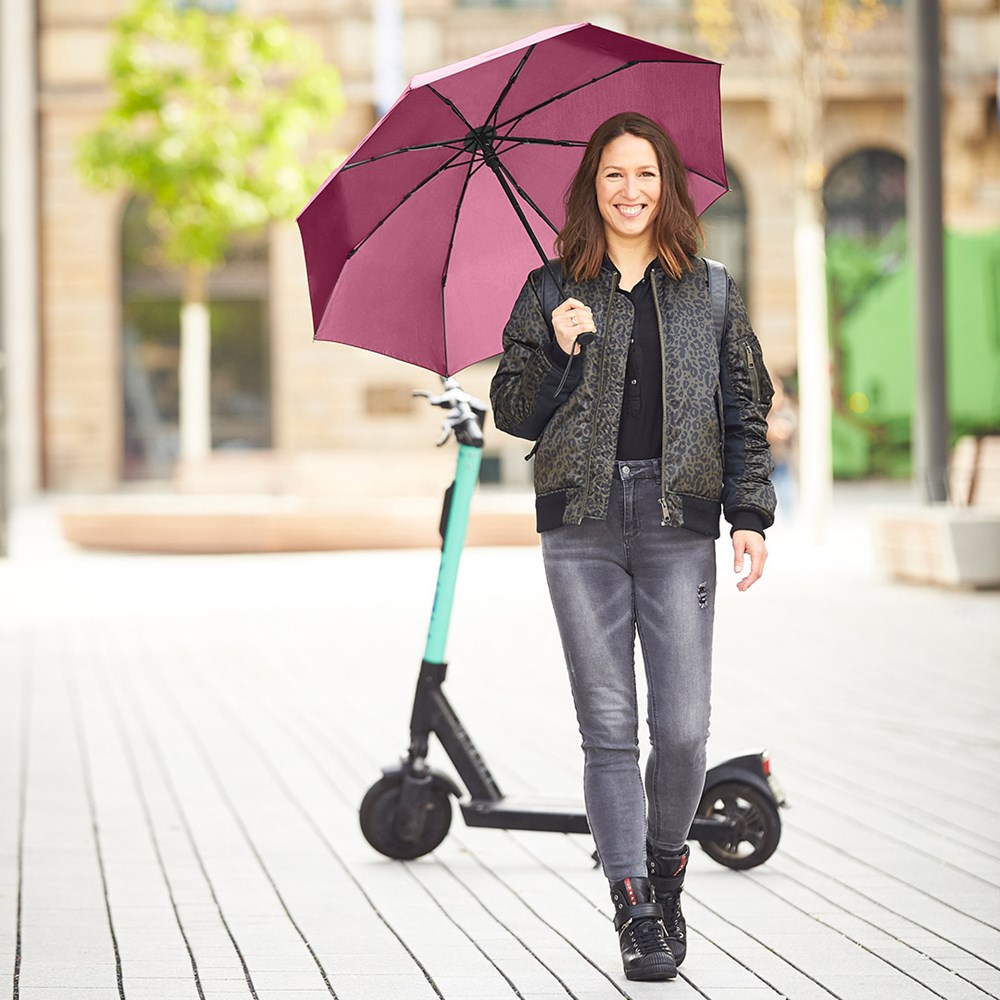 Attractively priced automatic open/close pocket umbrella with Windproof PLUS system Convenient automatic open/close function for quick opening and closing, high-quality Windproof PLUS system for maximum frame flexibility in stormy conditions, comfortable Soft-Feel handle with integrated push-button, elastic loop and promotional labelling option