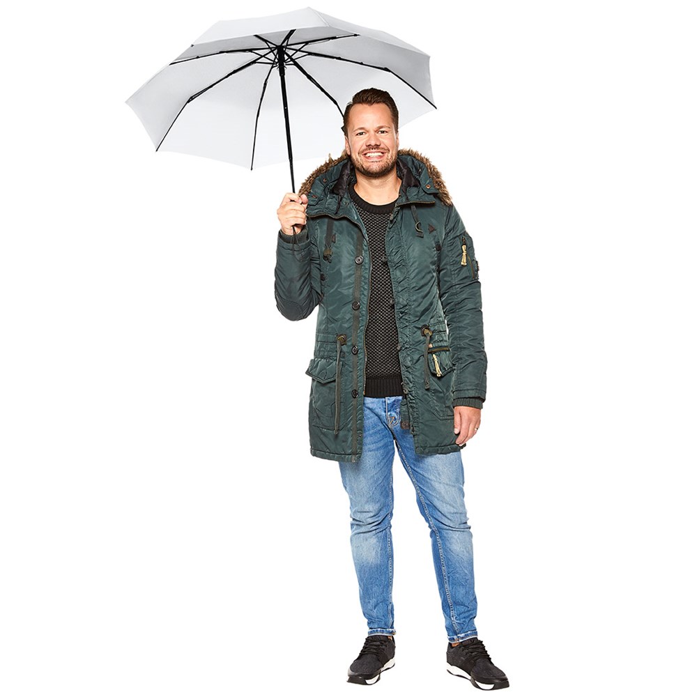 Attractively priced automatic open/close pocket umbrella with Windproof PLUS system Convenient automatic open/close function for quick opening and closing, high-quality Windproof PLUS system for maximum frame flexibility in stormy conditions, comfortable Soft-Feel handle with integrated push-button, elastic loop and promotional labelling option