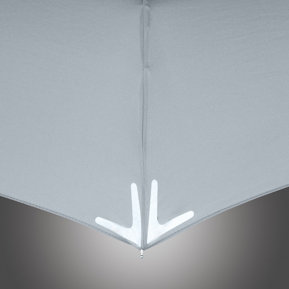 Sophisticated manual opening pocket umbrella with trendy reflectors on the panel corners Easy to handle thanks to sliding safety runner, high-quality Windproof PLUS system for maximum frame flexibility in stormy conditions, cover with 3M™ Scotchlite™ Reflective Material at the panel corners as a trendy detail, ergonomically shaped soft-feel handle, convenient sleeve with press button, awarded with reddot design award honourable mention 2011. Further Safebrella®-umbrellas: 5171, 5471, 5571 and 7571.