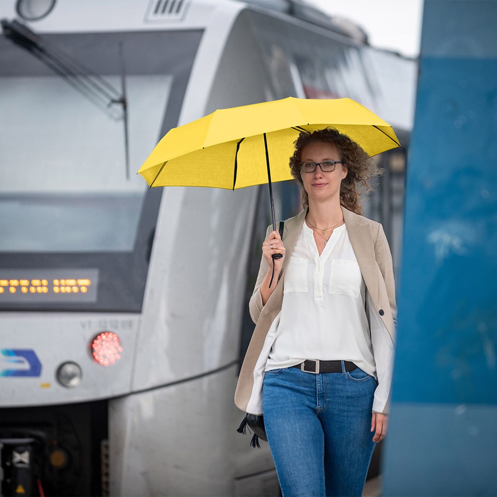 Attractively priced manual opening pocket umbrella Easy to handle thanks to sliding safety runner, Windproof system for higher frame flexibility and stability in windy conditions, Soft-Touch handle with elastic loop and promotional labelling option