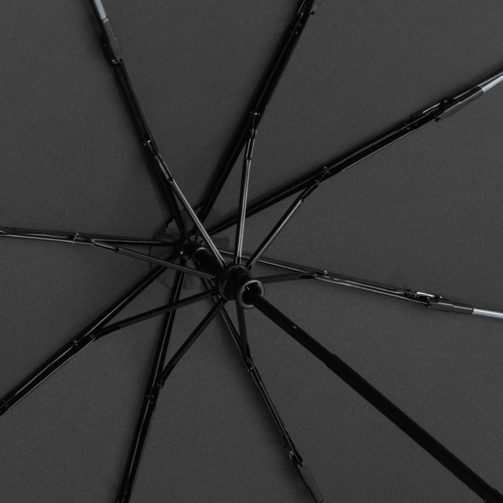 Stylish manual opening pocket umbrella with coloured elements Easy handling due to safety runner, high-quality Windproof PLUS system for maximum frame flexibility in stormy conditions, flexible fibreglass ribs, polyester pongee material made of recycled plastics, eco-friendly thanks to original waterSAVE cover material, with waterSAVE® label on the closing strap, attractive design thanks to coloured ribs, handle rings and seams, Soft-Feel handle with promotional labelling option, sleeve with coloured seam. Also available as mini umbrella (art. 5484, 5584), midsize umbrella (art. 4784) and as golf umbrella (art. 2384).