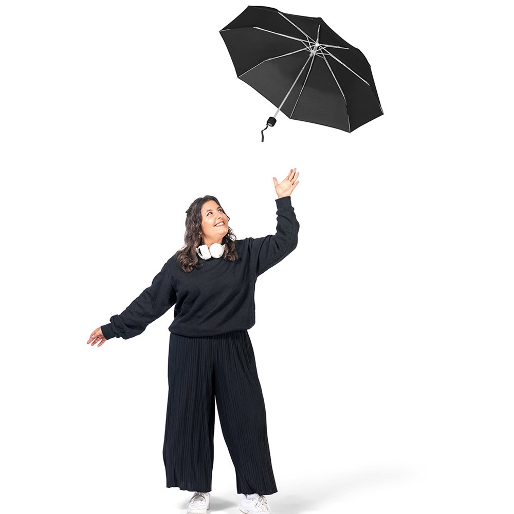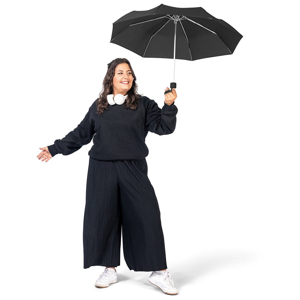 Ultra light manual opening mini pocket umbrella with aluminium frame Easy to handle thanks to sliding safety runner, Windproof system for higher frame flexibility and stability in windy conditions, Soft-Touch handle with promotional labelling option, suitable for handbag through ultra-light weight