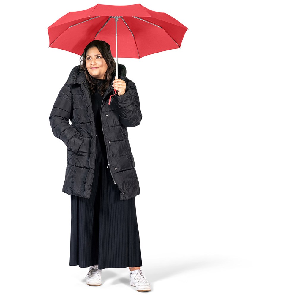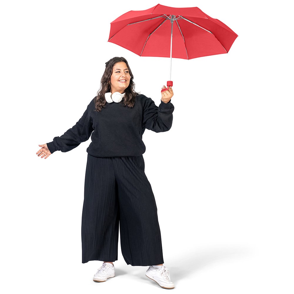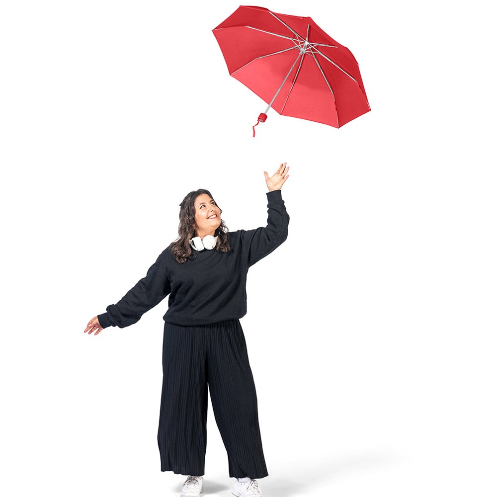 Ultra light manual opening mini pocket umbrella with aluminium frame Easy to handle thanks to sliding safety runner, Windproof system for higher frame flexibility and stability in windy conditions, Soft-Touch handle with promotional labelling option, suitable for handbag through ultra-light weight