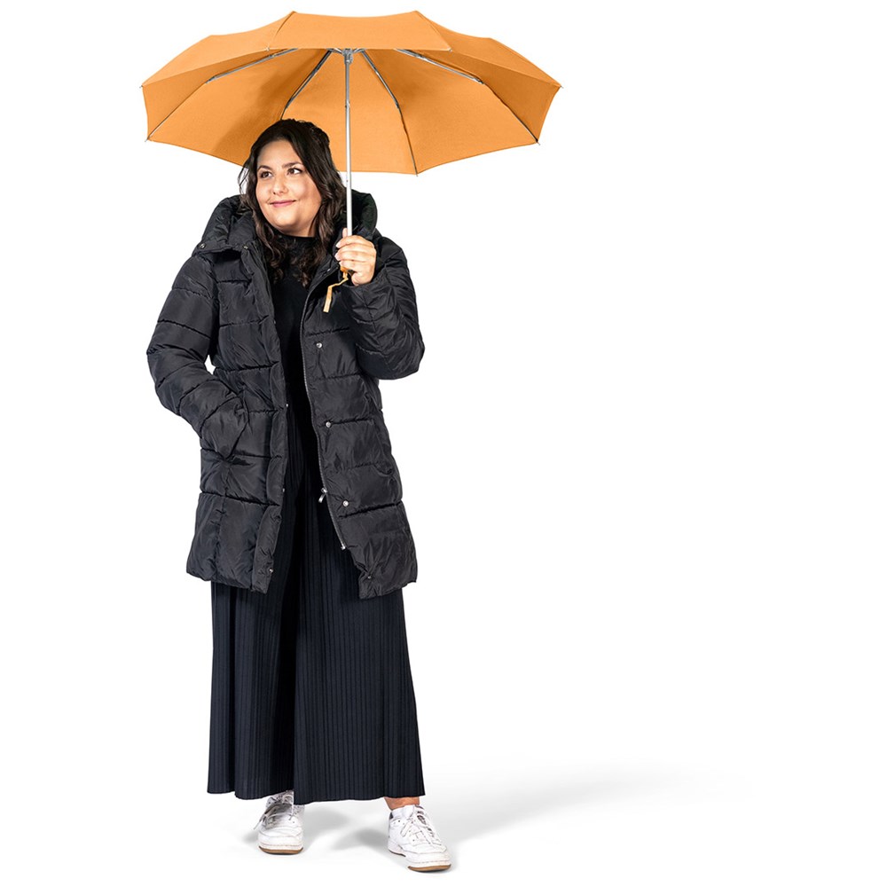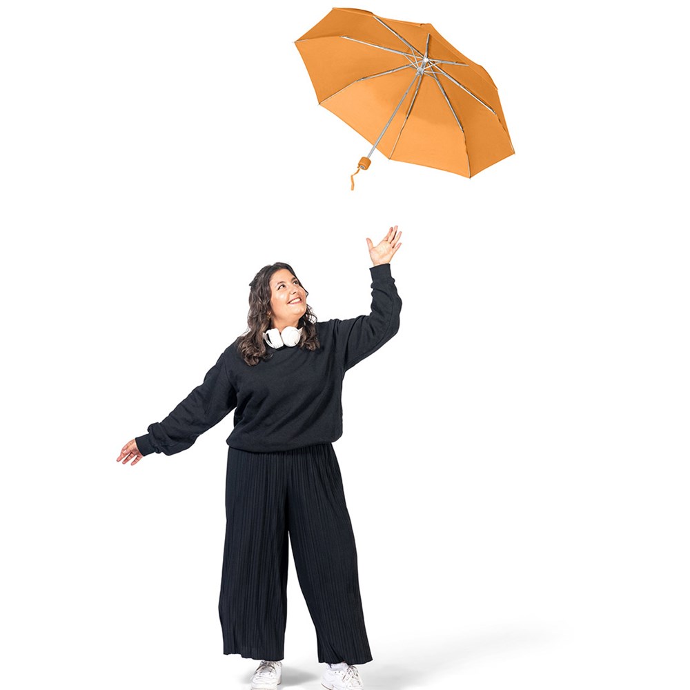 Ultra light manual opening mini pocket umbrella with aluminium frame Easy to handle thanks to sliding safety runner, Windproof system for higher frame flexibility and stability in windy conditions, Soft-Touch handle with promotional labelling option, suitable for handbag through ultra-light weight
