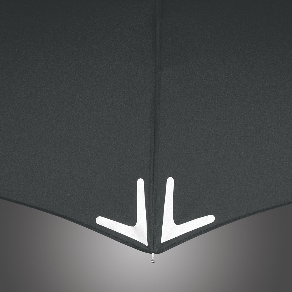 Sophisticated manual opening pocket umbrella with trendy reflectors and LED light Easy to handle thanks to safety runner, high-quality Windproof PLUS system for maximum frame flexibility in stormy conditions, cover with 3M™ Scotchlite™ Reflective Material at the panel corners as as a trendy detail, Soft-Feel handle with LED light, light head (incl. battery) changeable to continuous white light and flashing red light, convenient sleeve with press button, Batteries (2 x CR2025) included in the scope of delivery. Further Safebrella®-umbrellas: 5071, 5471, 5571 and 7571.