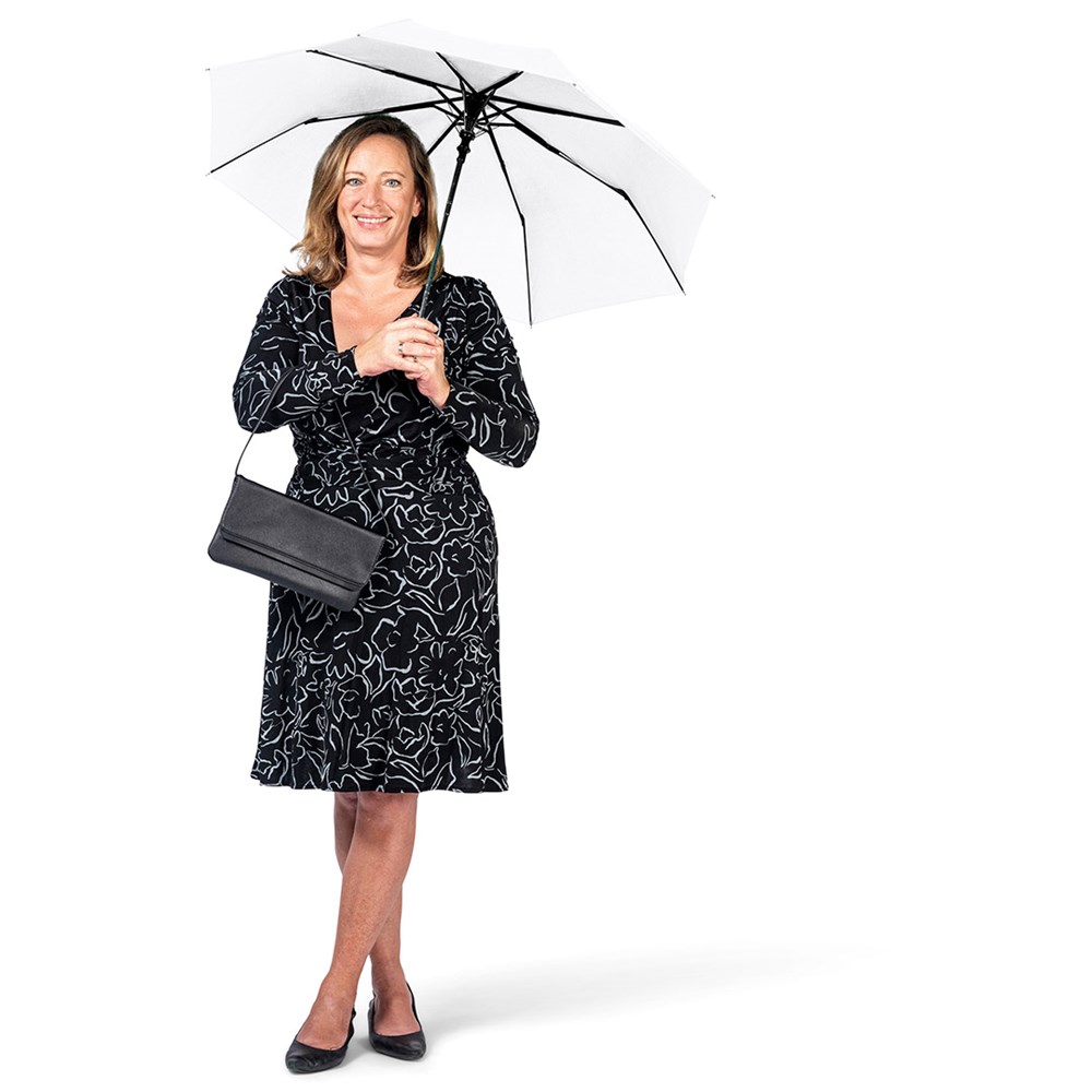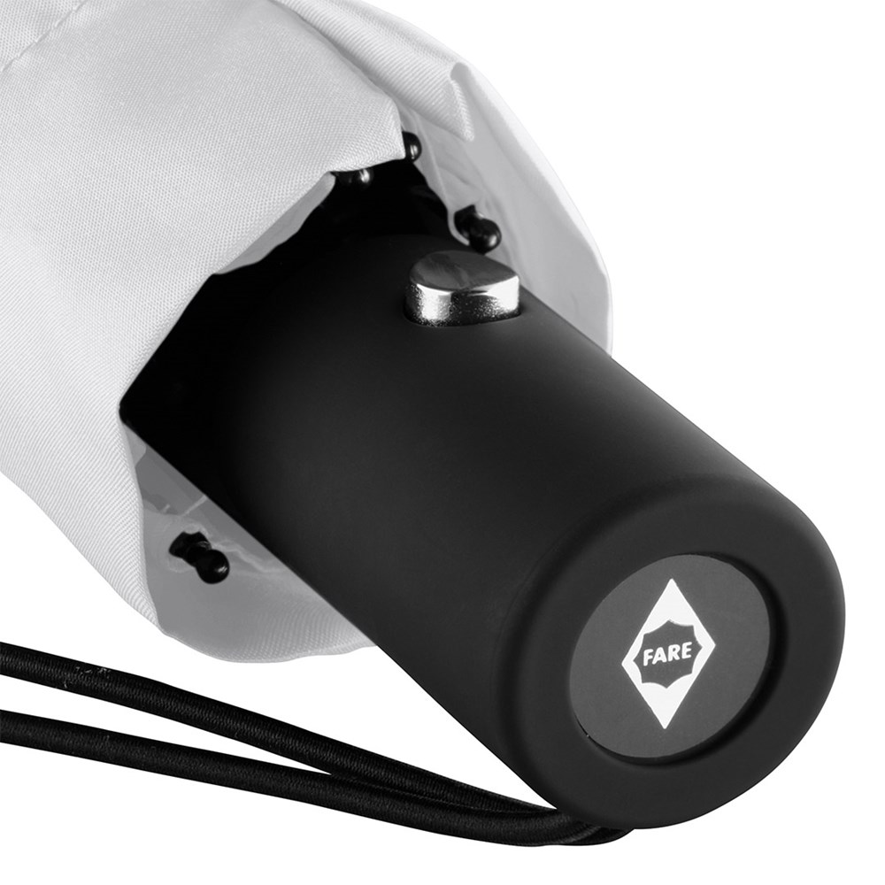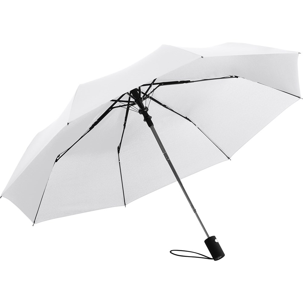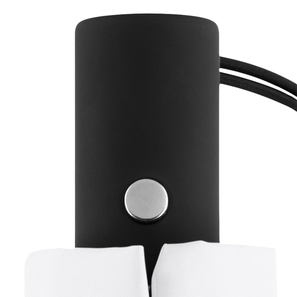 Attractively priced automatic mini pocket umbrella in noble design Convenient automatic function for quick opening, Windproof system for higher flexibility and stability in windy conditions, chromed steel shaft, elegant look due to chrome-plated details, soft-touch handle with chromed push-button, elastic carrying loop and promotional labelling option
