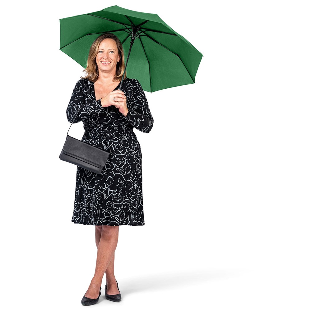 Attractively priced automatic mini pocket umbrella in noble design Convenient automatic function for quick opening, Windproof system for higher flexibility and stability in windy conditions, chromed steel shaft, elegant look due to chrome-plated details, soft-touch handle with chromed push-button, elastic carrying loop and promotional labelling option