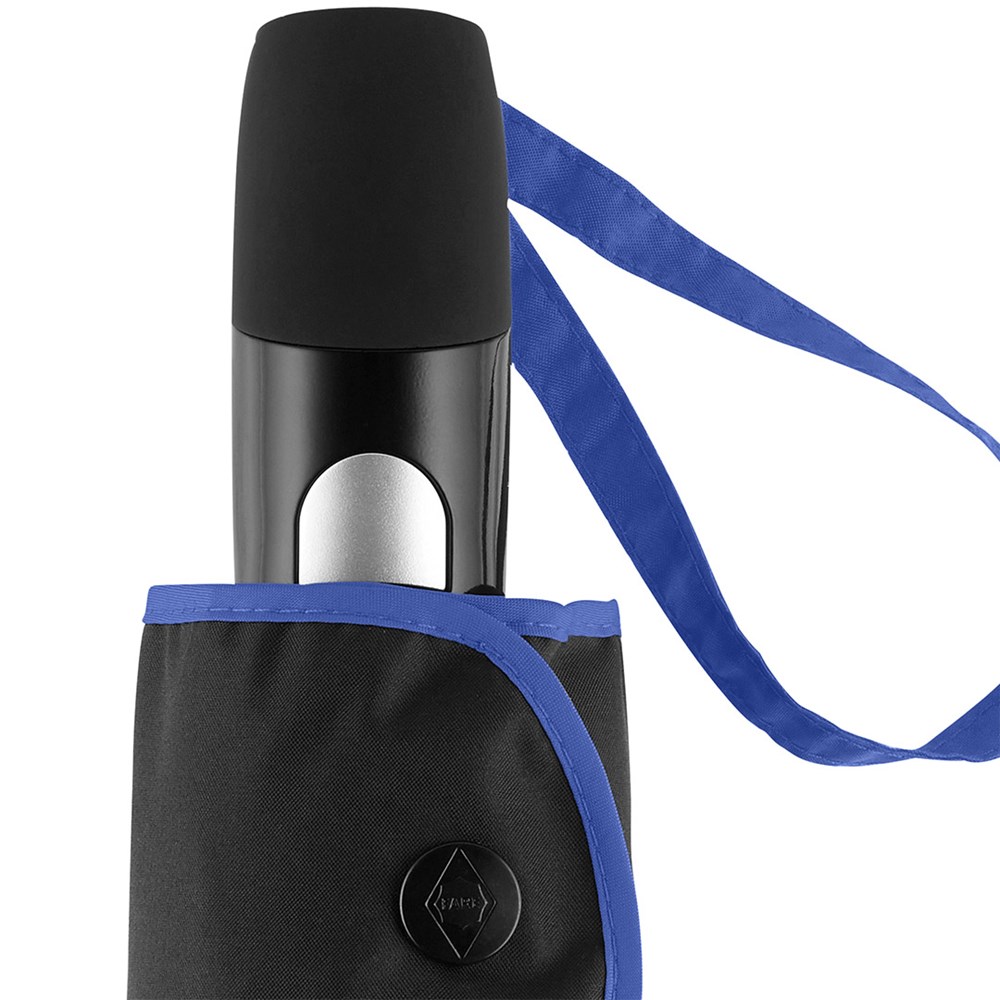 Stylish automatic open/close oversize pocket umbrella with coloured highlights Convenient automatic open / close function for quick opening and closing, high-quality Windproof PLUS system for maximum frame flexibility in stormy conditions, striking cover decoration with coloured panel seam pipings, matt / shiny contrasting Soft-Feel handle with integrated push-button and promotional labelling option, coloured handle strap, sleeve with press button and coloured piping. Also available as midsize umbrella (art. 4399).
