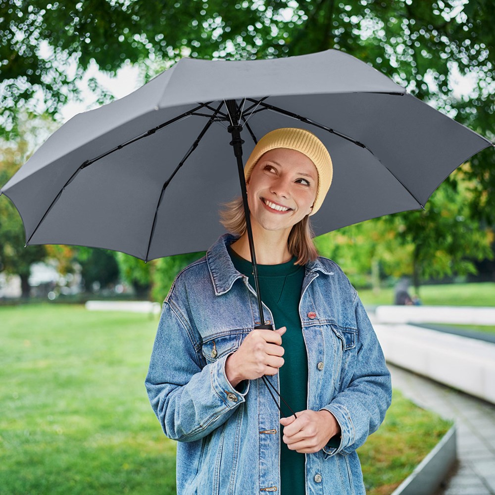 Attractively priced automatic pocket umbrella with Windproof PLUS system Convenient automatic function for quick opening, high-quality Windproof PLUS system for maximum frame flexibility in stormy conditions, comfortable Soft-Feel handle with integrated pushbutton, elastic carrying loop and promotional labelling option.
