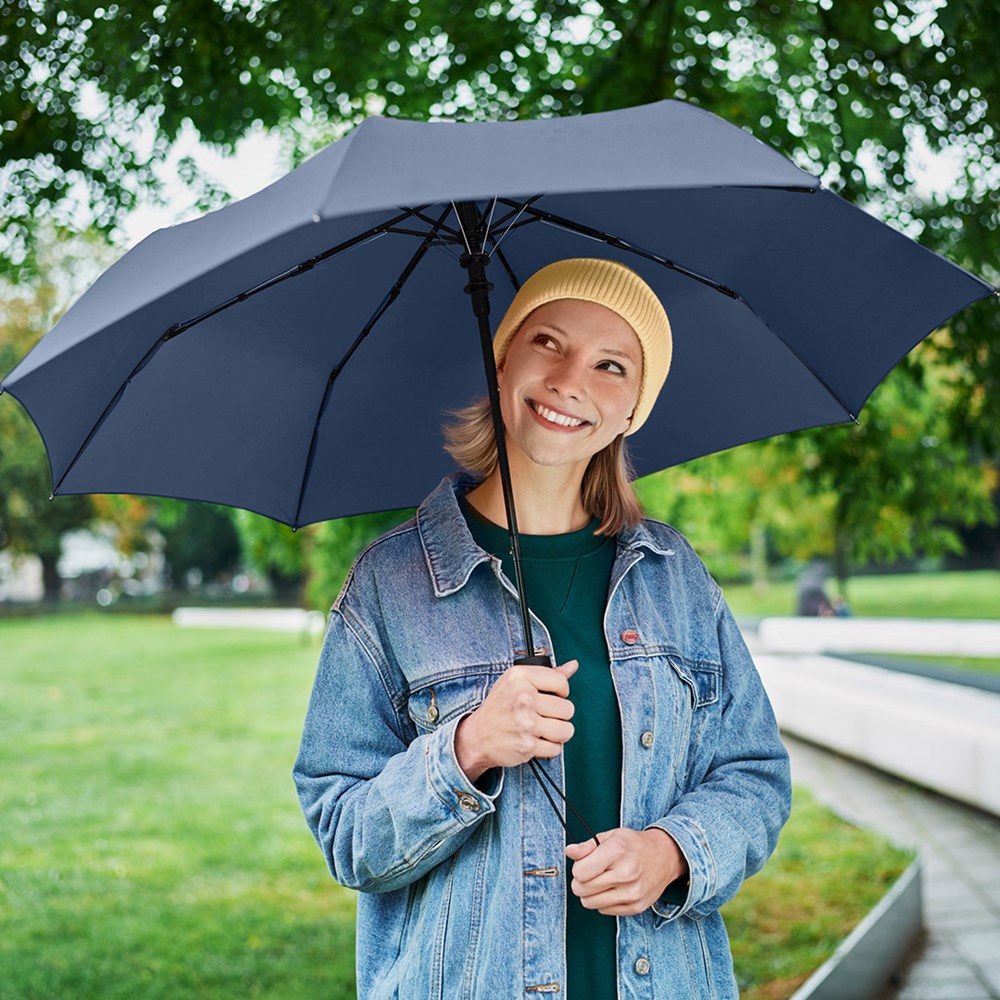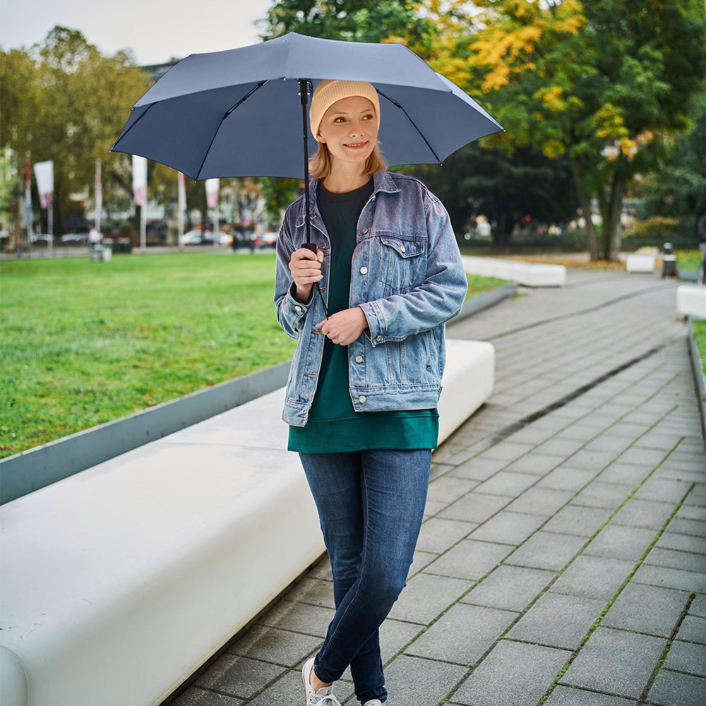 Attractively priced automatic pocket umbrella with Windproof PLUS system Convenient automatic function for quick opening, high-quality Windproof PLUS system for maximum frame flexibility in stormy conditions, comfortable Soft-Feel handle with integrated pushbutton, elastic carrying loop and promotional labelling option.