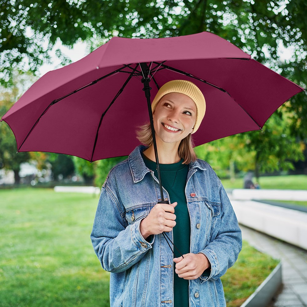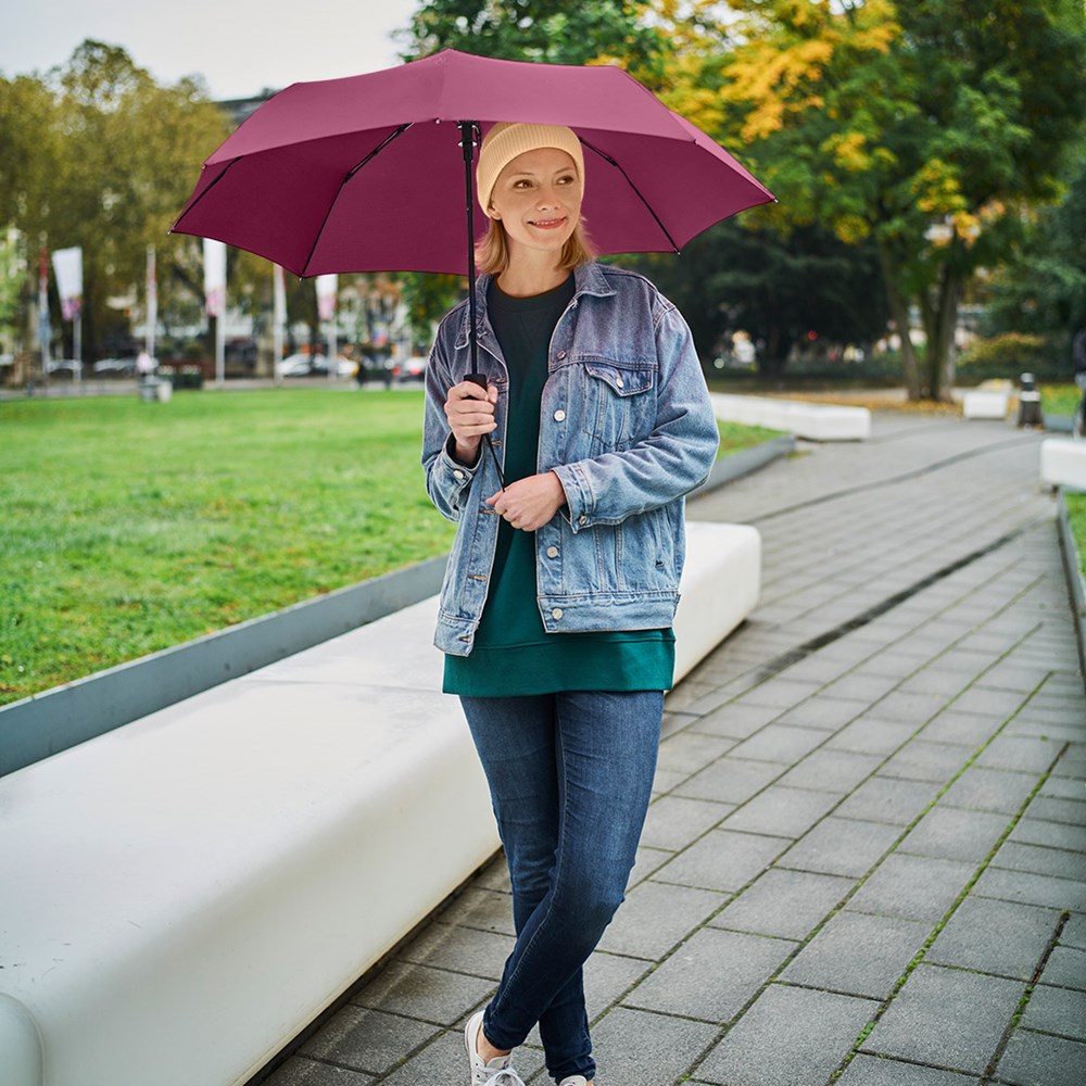 Attractively priced automatic pocket umbrella with Windproof PLUS system Convenient automatic function for quick opening, high-quality Windproof PLUS system for maximum frame flexibility in stormy conditions, comfortable Soft-Feel handle with integrated pushbutton, elastic carrying loop and promotional labelling option.