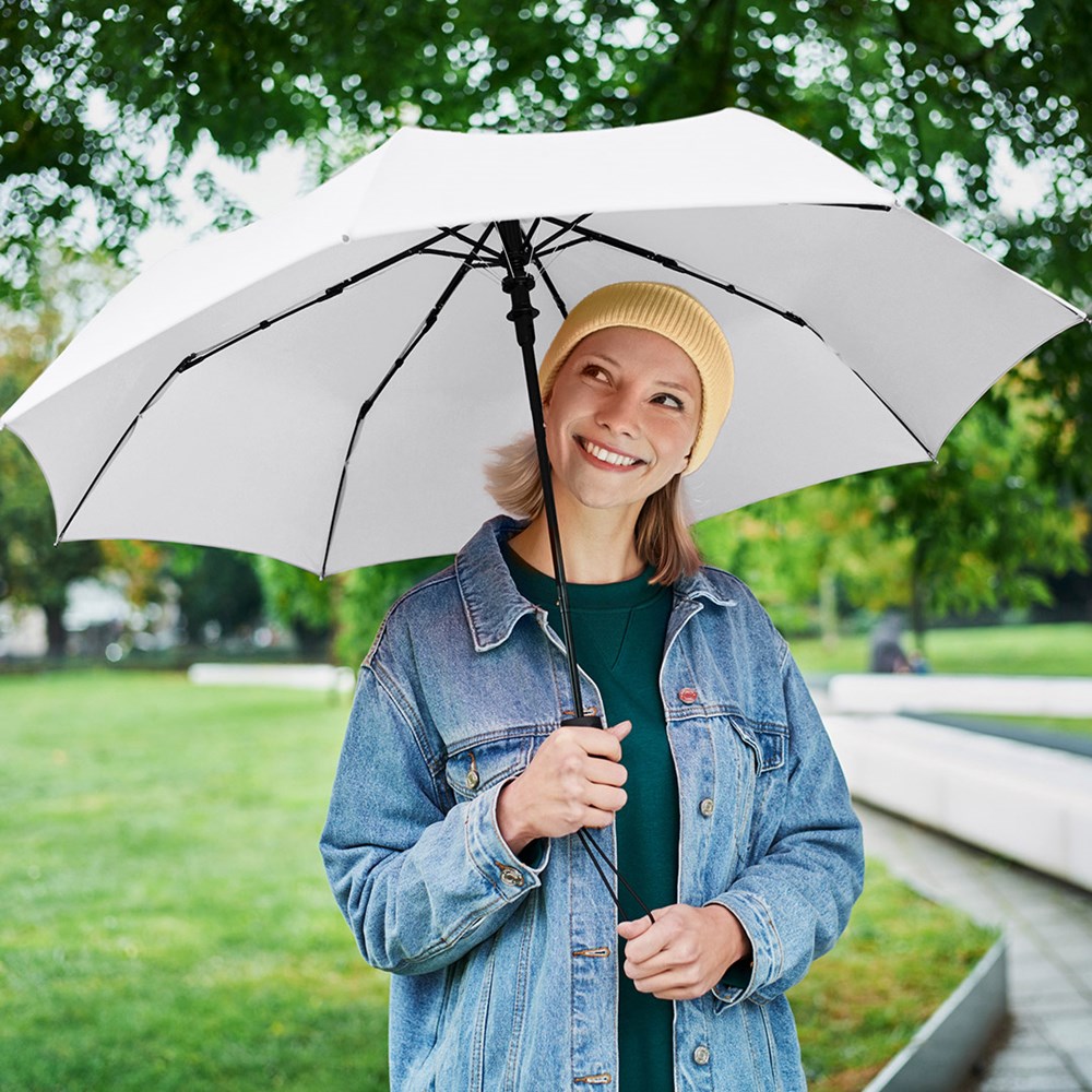 Attractively priced automatic pocket umbrella with Windproof PLUS system Convenient automatic function for quick opening, high-quality Windproof PLUS system for maximum frame flexibility in stormy conditions, comfortable Soft-Feel handle with integrated pushbutton, elastic carrying loop and promotional labelling option.