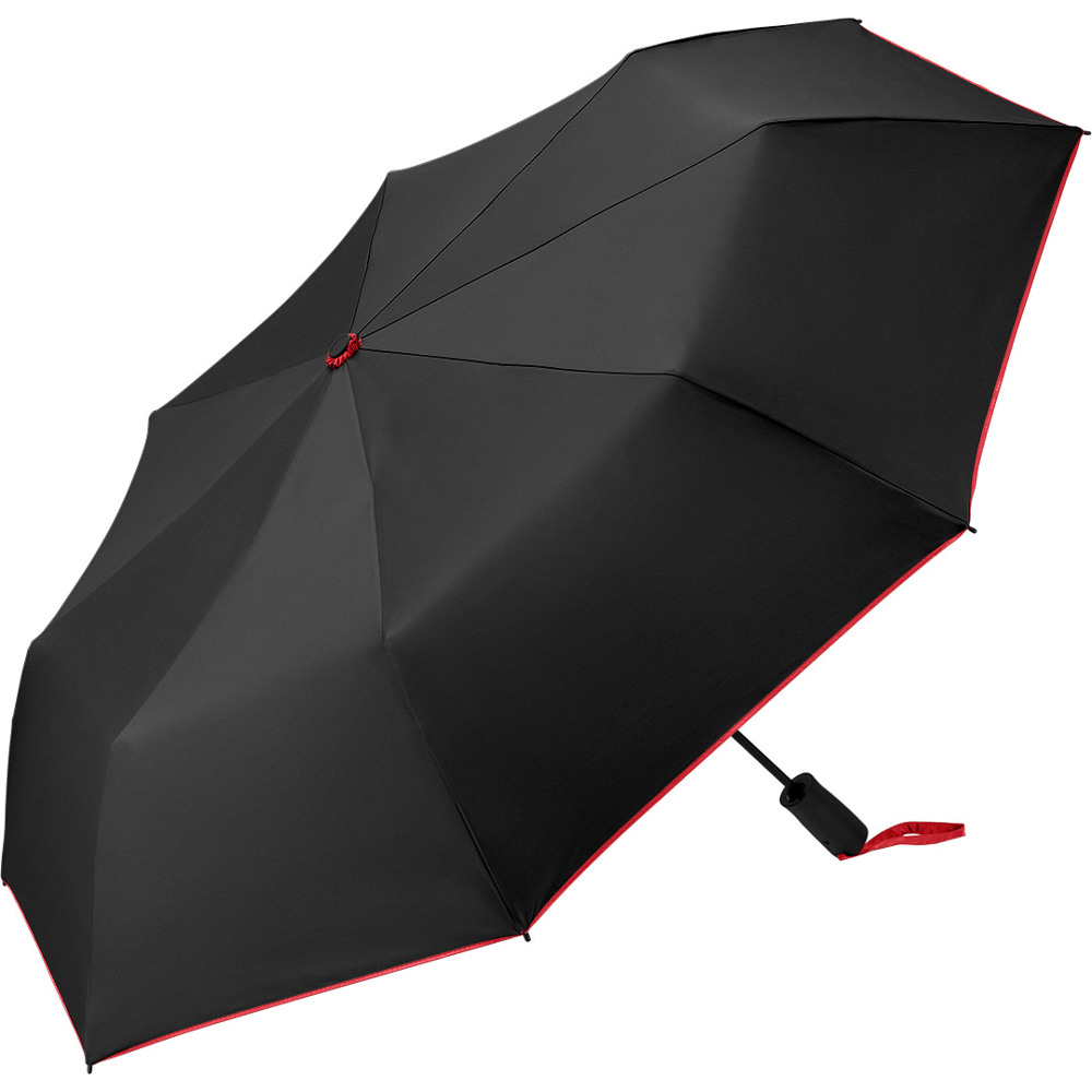 Attractive automatic pocket umbrella with two colour cover Convenient automatic function for quick opening, high-quality Windproof PLUS system for maximum frame flexibility in stormy conditions, harmonically combined two-colour cover with coordinated interior and exterior colours, seam, rosette and closing strap in colour matching to interior colour of cover, inside coated cover, hand friendly Soft-Feel handle with integrated pushbutton and promotional labelling option, coloured handle strap, sleeve with coloured piping. Also available as regular umbrella (art. 1159).