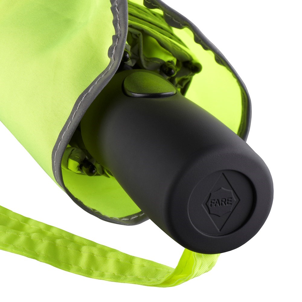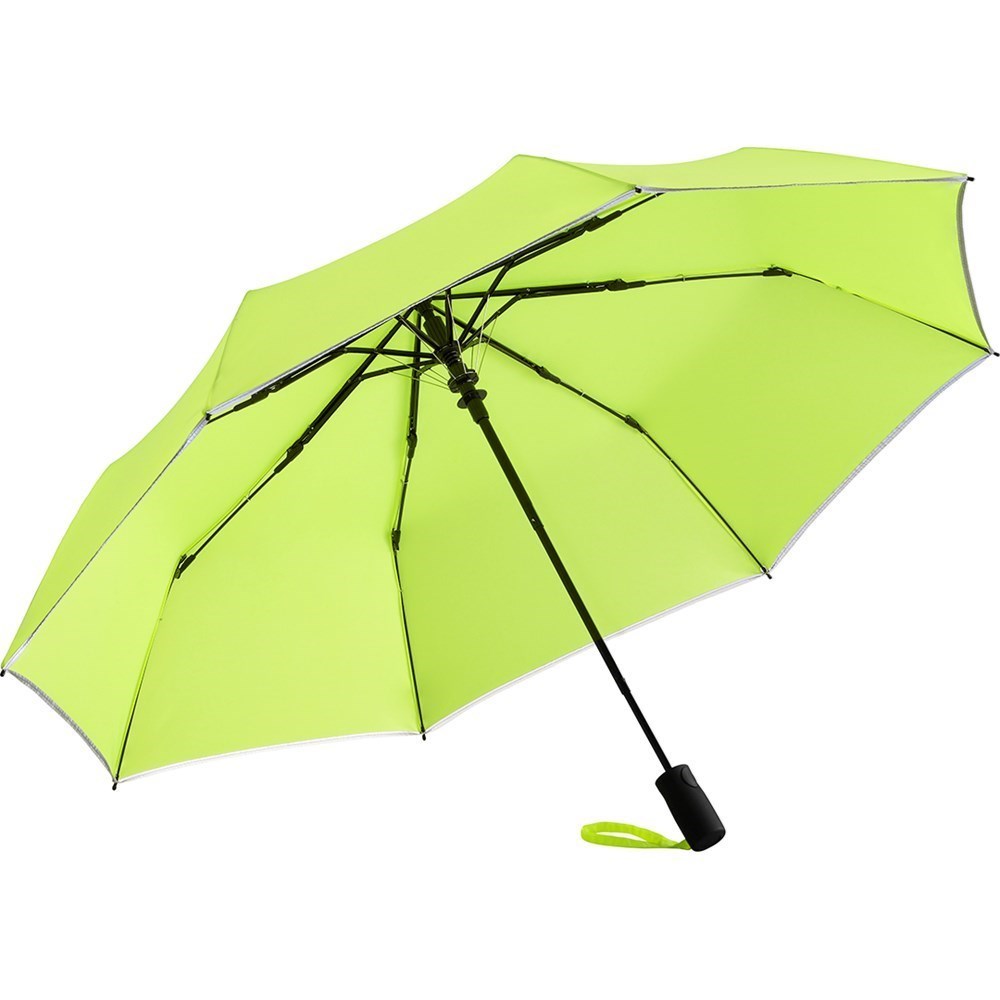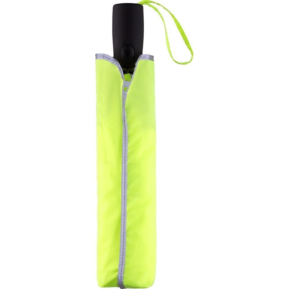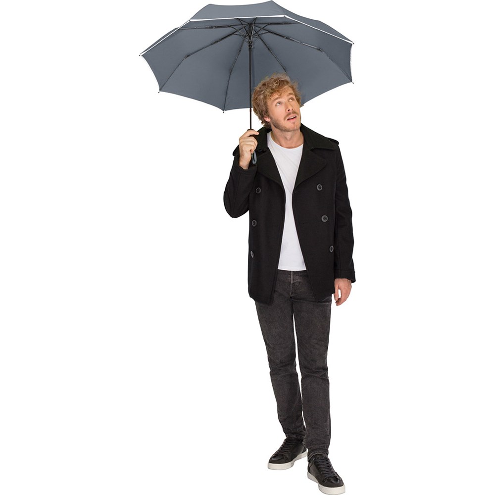 Sturdy automatic pocket umbrella with trendy reflective piping Convenient automatic function for quick opening, high-quality Windproof PLUS system for maximum frame flexibility in stormy conditions, cover with trendy reflective piping in silver, Soft-Touch handle with shiny push-button and promotional labelling option, sleeve with trendy reflective piping