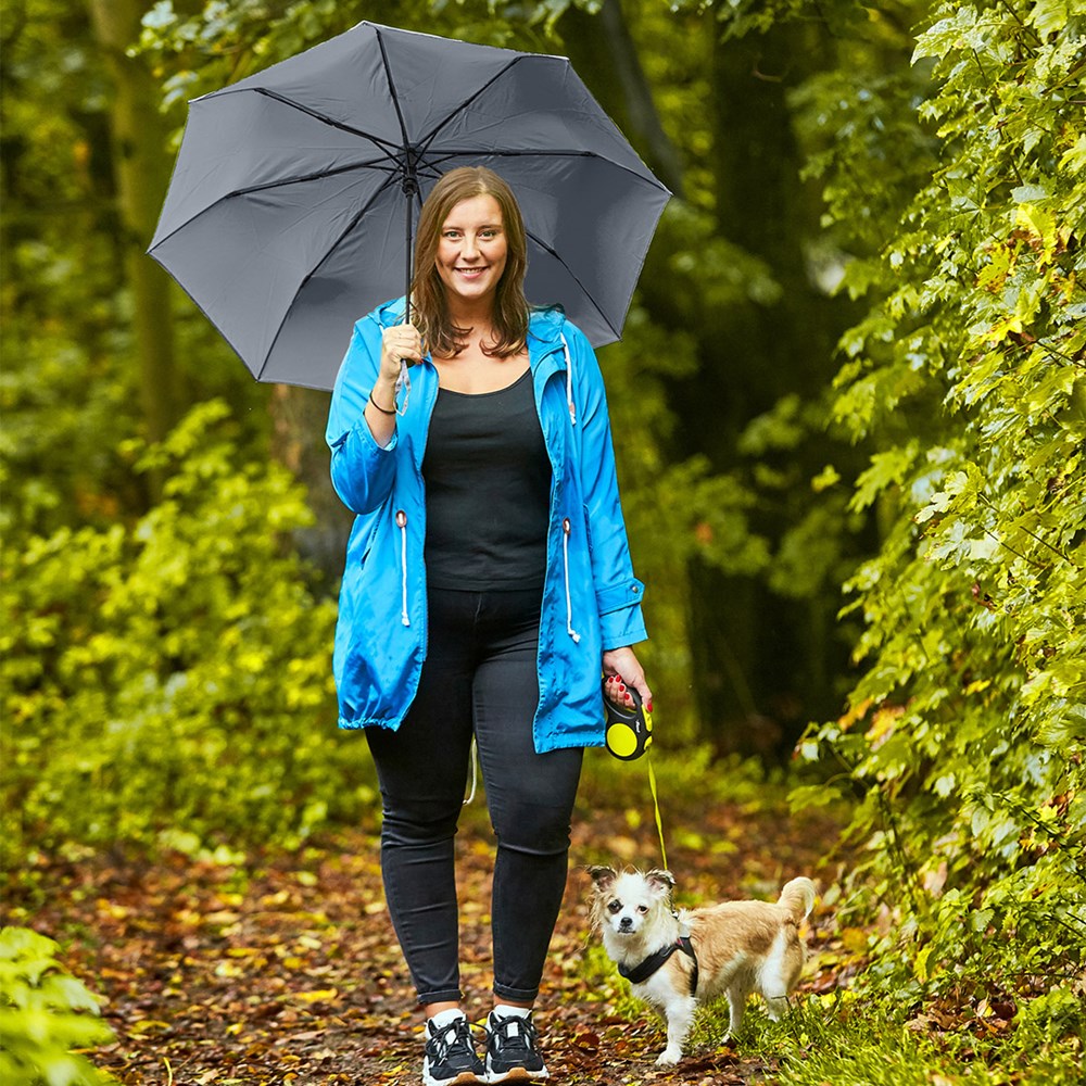 Sturdy automatic pocket umbrella with trendy reflective piping Convenient automatic function for... more