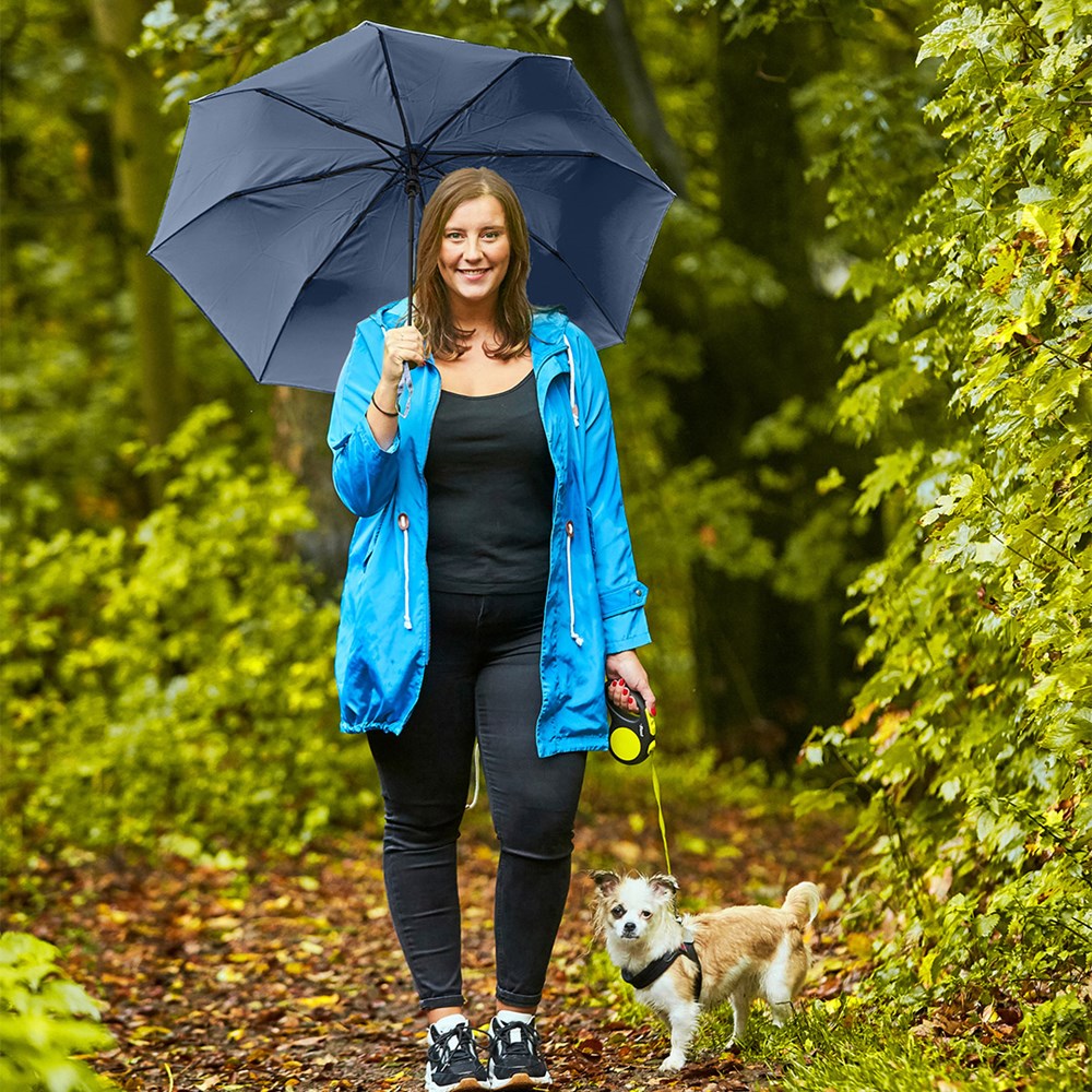 Sturdy automatic pocket umbrella with trendy reflective piping Convenient automatic function for... more