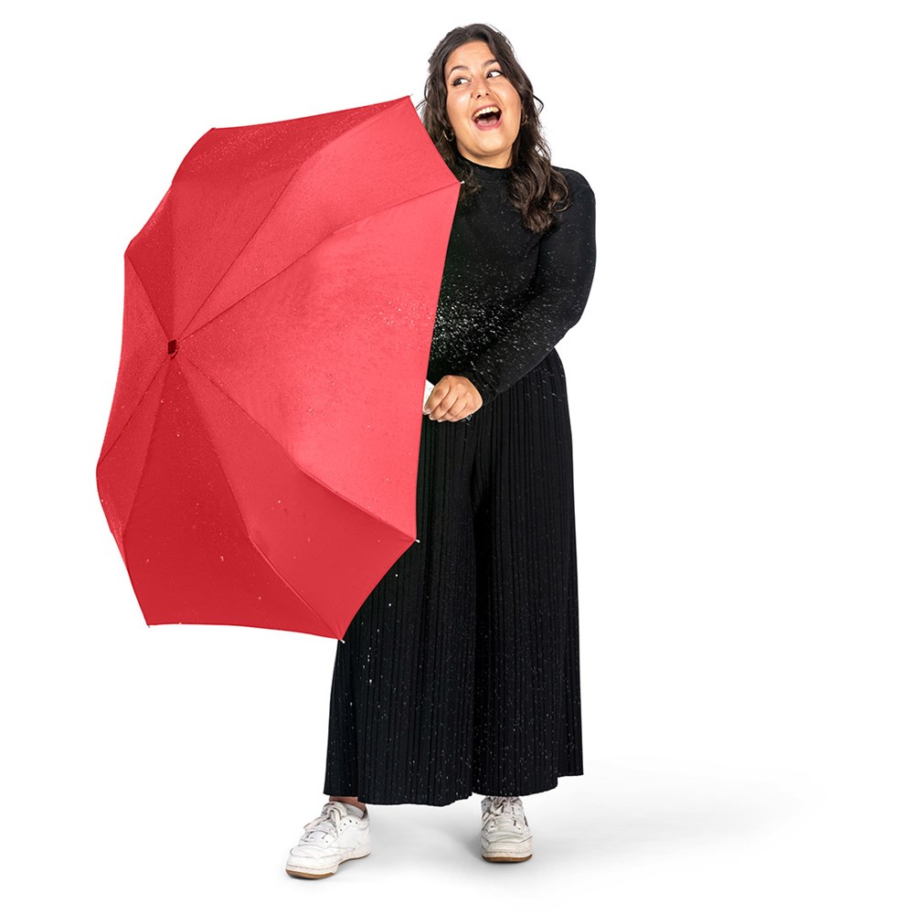 Eye-catching automatic open/close pocket umbrella in square shape Convenient automatic open/close function for quick opening and closing, high-quality Windproof PLUS system for maximum frame flexibility in stormy conditions, exclusive square Soft-Feel handle with silver push-button and double promotional labelling option, convenient sleeve in square design