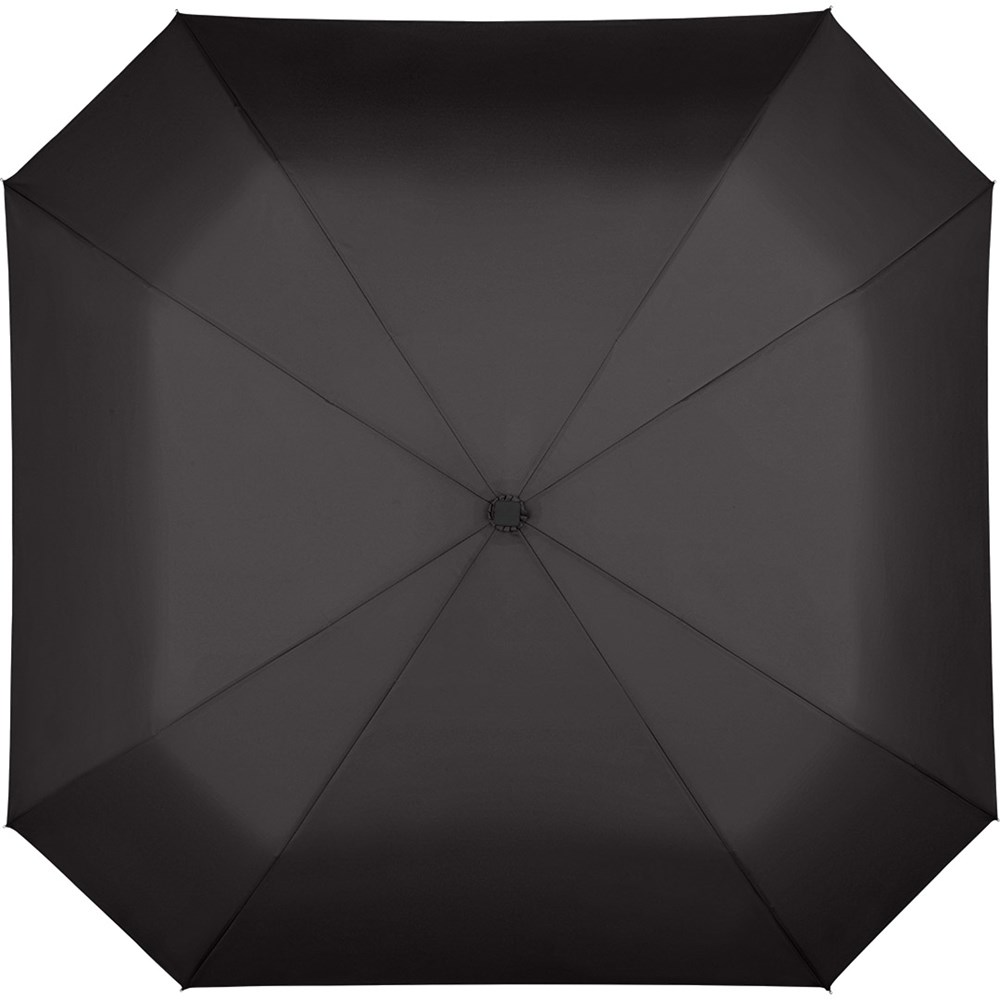 Eye-catching automatic open/close pocket umbrella in square shape Convenient automatic open/close function for quick opening and closing, high-quality Windproof PLUS system for maximum frame flexibility in stormy conditions, exclusive square Soft-Feel handle with silver push-button and double promotional labelling option, convenient sleeve in square design