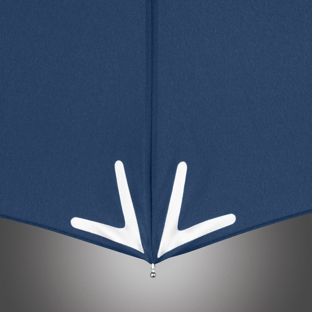 Sophisticated automatic pocket umbrella with trendy reflectors and LED light Convenient automatic function for a quick opening, high-quality Windproof PLUS system for maximum frame flexibility in stormy conditions, chromed steel shaft, cover with 3M™ Scotchlite™ Reflective Material at the panel corners as a trendy detail, Soft-Feel handle with LED light and promotional labelling option, light head (incl. battery) adjustable on continuous white light and flashing red light, Batteries (2 x CR2025) included in the scope of delivery. Further Safebrella®-umbrellas: 5071, 5171, 5471 and 7571.