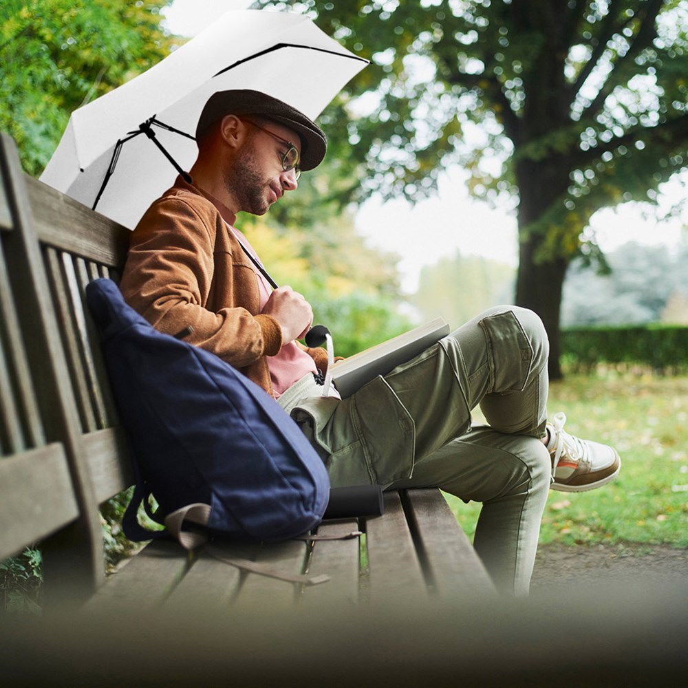 Practical manual opening mini pocket umbrella in a tube with Windproof PLUS system Easy to handle thanks to sliding safety runner, high-quality Windproof PLUS system for maximum frame flexibility in stormy conditions, plastic handle with carrying loop made of cover material colour-coordinated with the cover, special handle with silicone ring to ensure tight closing of the package, tube made of plastic with rubber lip for draining water and for the safe transport of the wet umbrella