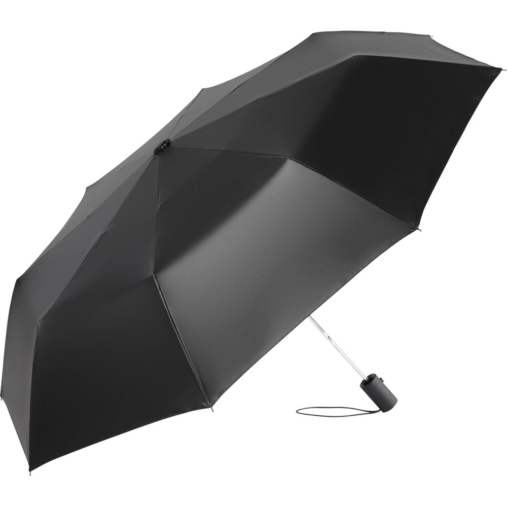 Neutral automatic pocket umbrella with colourful print inside Convenient automatic function for quick opening, high-quality Windproof PLUS system for maximum frame flexibility in stormy conditions, chromed steel shaft, externally coated cover with internal heattransfer imprint, Soft-Feel handle with raised push-button and promotional labelling option. Also available as regular umbrella (art. 1193).