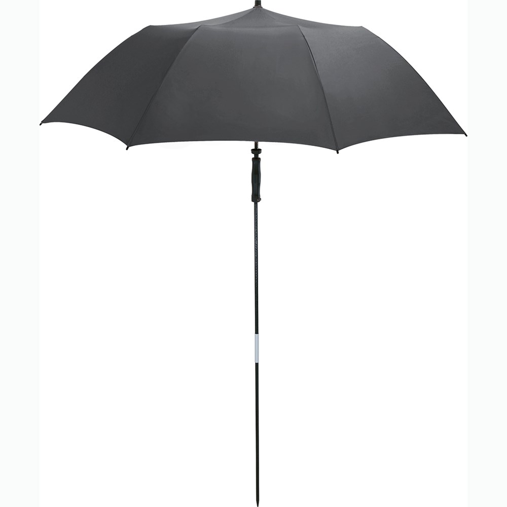 Waterproof travel parasol with UV protection 50+ Easy to handle thanks to hand friendly runner, ribs and 2-section foldable lower shaft made of sturdy fibreglass, lower shaft with tip for fixing in the ground, cover with sun protection factor UPF 50+, convenient carry case with shoulder strap and mesh, suitable for trolley suitcases, hospitable diameter, parasol also useable as umbrella, excluding ground spike (art. 8939)