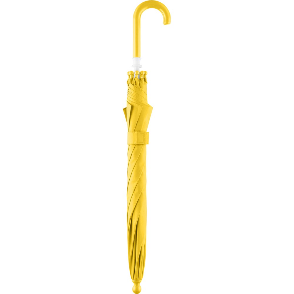 Sturdy kids umbrella with child friendly design Simple and safe handling ensured by springless safety slider, high-quality Windproof PLUS system for maximum frame flexibility in stormy conditions, frame with extremely sturdy fibreglass ribs, chromed steel shaft, rounded and enlarged tips to minimize the risk of injuries, rounded top, colour coordinated crook handle