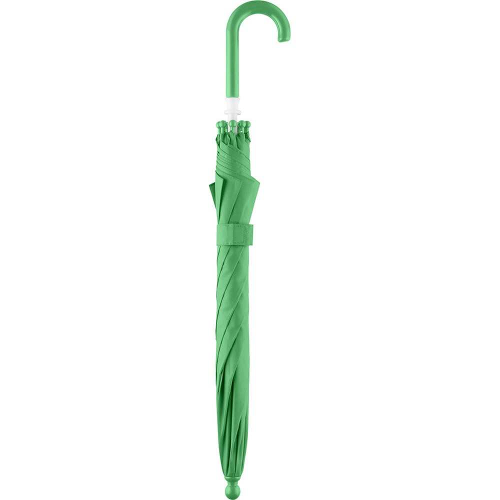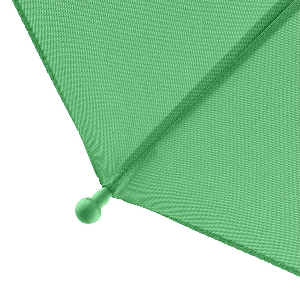 Sturdy kids umbrella with child friendly design Simple and safe handling ensured by springless safety slider, high-quality Windproof PLUS system for maximum frame flexibility in stormy conditions, frame with extremely sturdy fibreglass ribs, chromed steel shaft, rounded and enlarged tips to minimize the risk of injuries, rounded top, colour coordinated crook handle