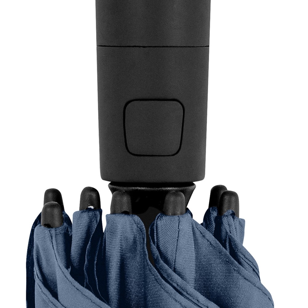 Attractive automatic umbrella in medium size with interior LED light Convenient automatic function for quick opening, high-quality Windproof PLUS system for maximum frame flexibility in stormy conditions, flexible fibreglass ribs, Soft-Feel handle with integrated push button, button to turn off the light and promotional labelling option, higher corrosion protection due to black galvanised steel shaft, WEEE reg. no. DE 14360689, Batteries (3 x AAA) included in the scope of deliver.