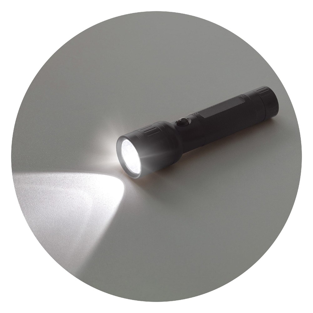 Take this alluminium 3W LED torch with you on a survival trip or when camping. It is compact and lightweight. Batteries included. Comes packaged in a gift box.