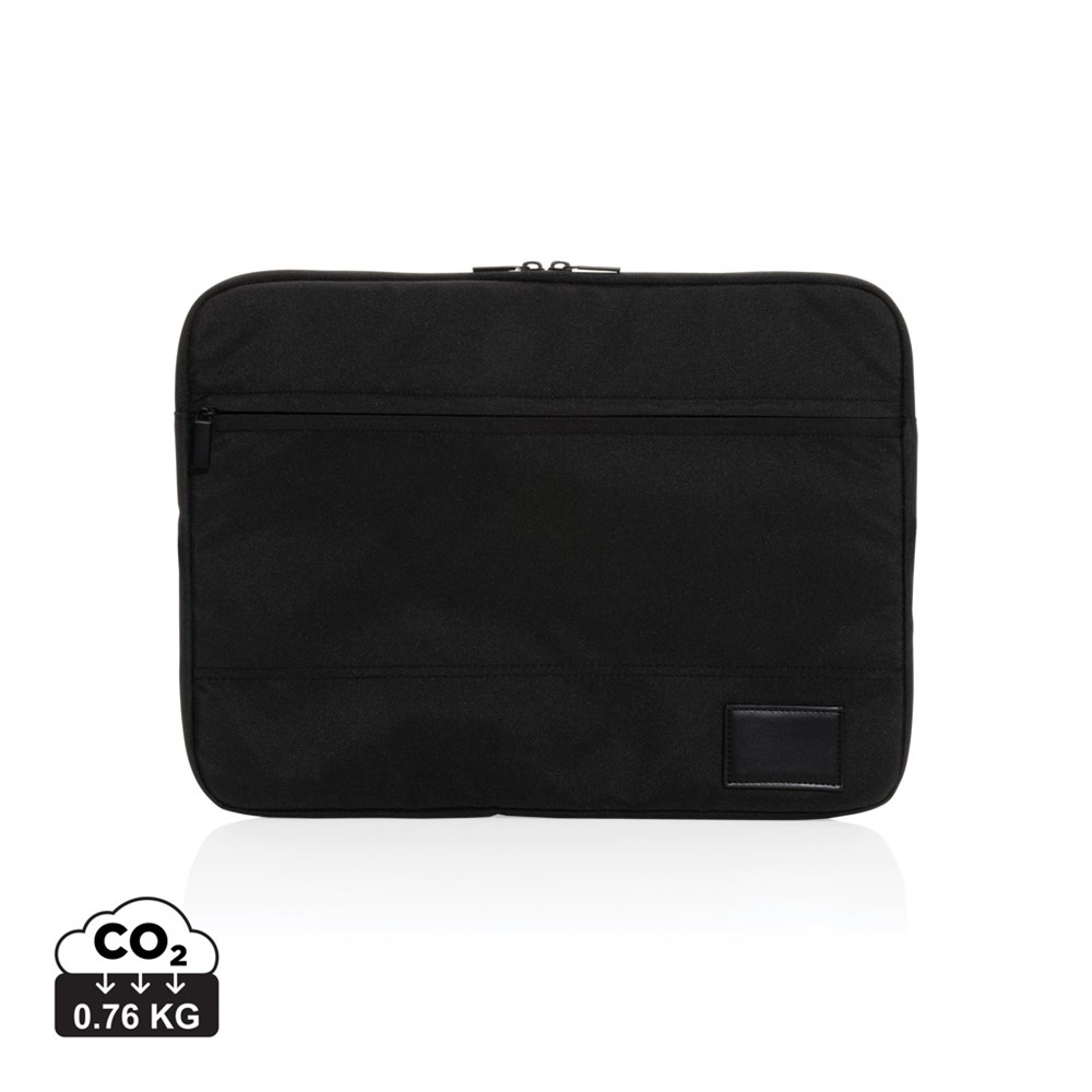 A stylish way to protect your laptop – a roomy front pocket and a sleek design that holds up to a 14" laptop. Made with 300D recycled polyester. With AWARE™ tracer that validates the genuine use of recycled materials. Each sleeve has reused 8 PET bottles. 2% of proceeds of each Aware™ product sold will be donated to Water.org.