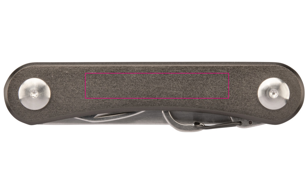 Key organiser for max. 6 keys, 6 additional functions, bottle opener, carabiner, wrench (4 sizes), slotted screwdriver, tool for wing screws , centimetre/inch ruler, incl. belt pouch, aluminium, stainless steel, matt, silver-coloured/titanium coloured