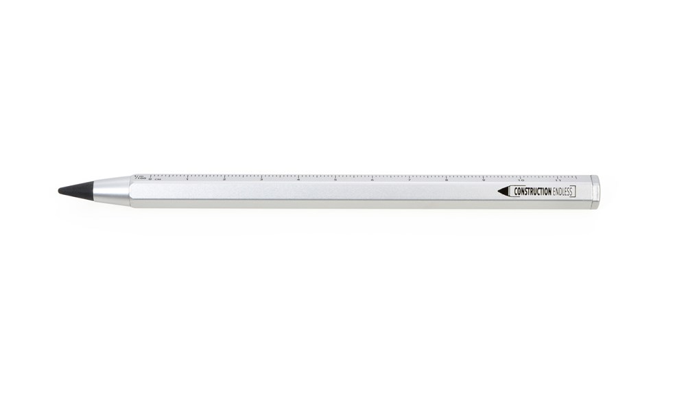 Multitasking pencil with sustainable endless writing tip (approx. 20km writing length), HB, erasable, without sharpening, centimetre/inch ruler, 1:20/1:50 scale, exchangeable writing tip, aluminium, metal, shiny, carbon look