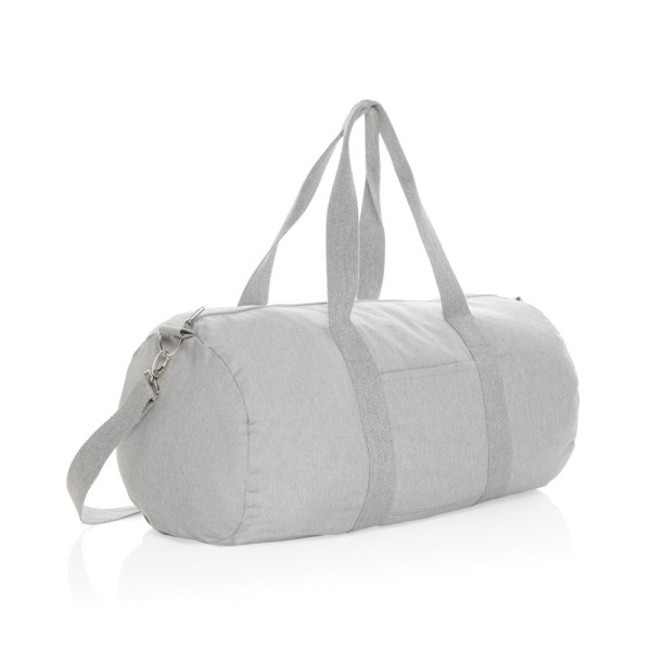 The Impact AWARE™ 285 gsm recycled canvas duffle bag undyed is the perfect way to carry your essentials for a short trip. This spacious duffle provides sufficient space for your essentials. The recycled canvas is undyed and used in its raw form, without chemicals from dyeing or bleaching. With AWARE™ tracer that validates the genuine use of recycled materials. 2% of proceeds of each Impact product sold will be donated to Water.org. Composition 70% recycled cotton, 30% recycled polyester.