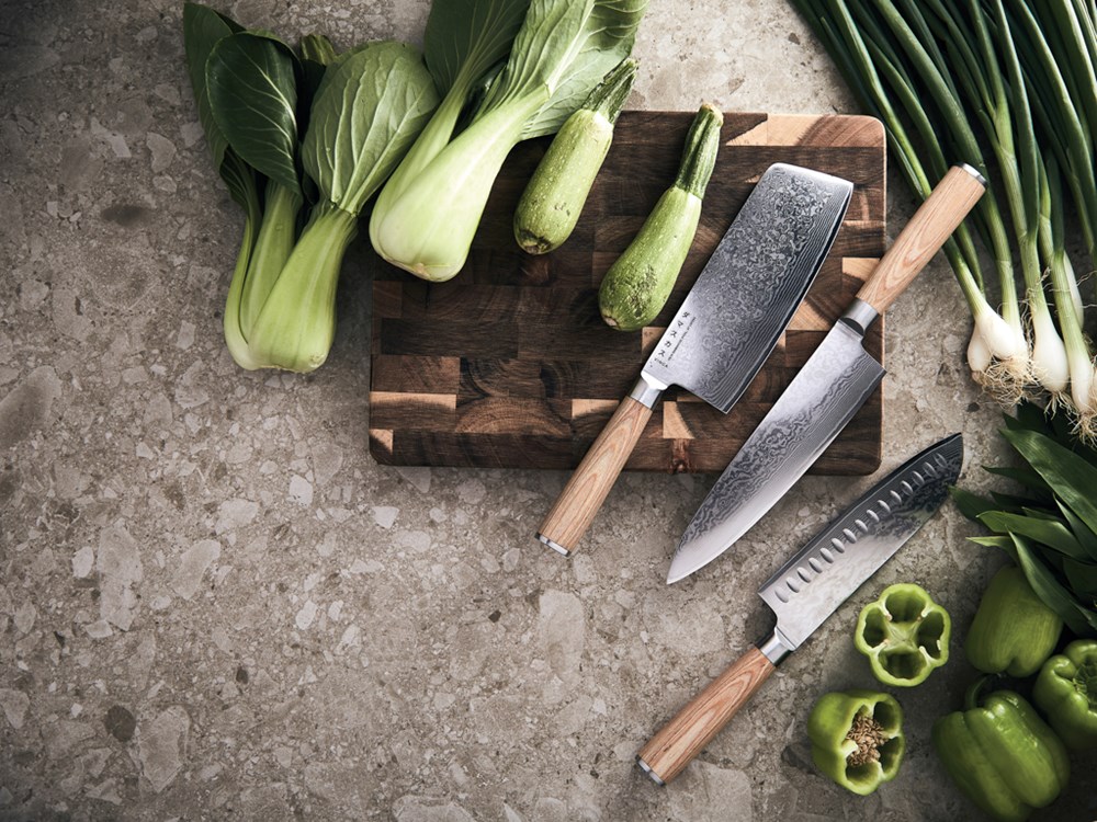This chef's edition knife is ideal for cutting meat and larger vegetables or chopping herbs. The sturdy pakkawood handle is ergonomically designed, making the knife easy and comfortable to use. This means you can work with the knife for a long time without tiring your hand. The blade has an incredibly hard core of VG10 steel which is cast in 67 layers of steel. The result is a durable blade with an incredible sharpness and outstanding cutting performance.