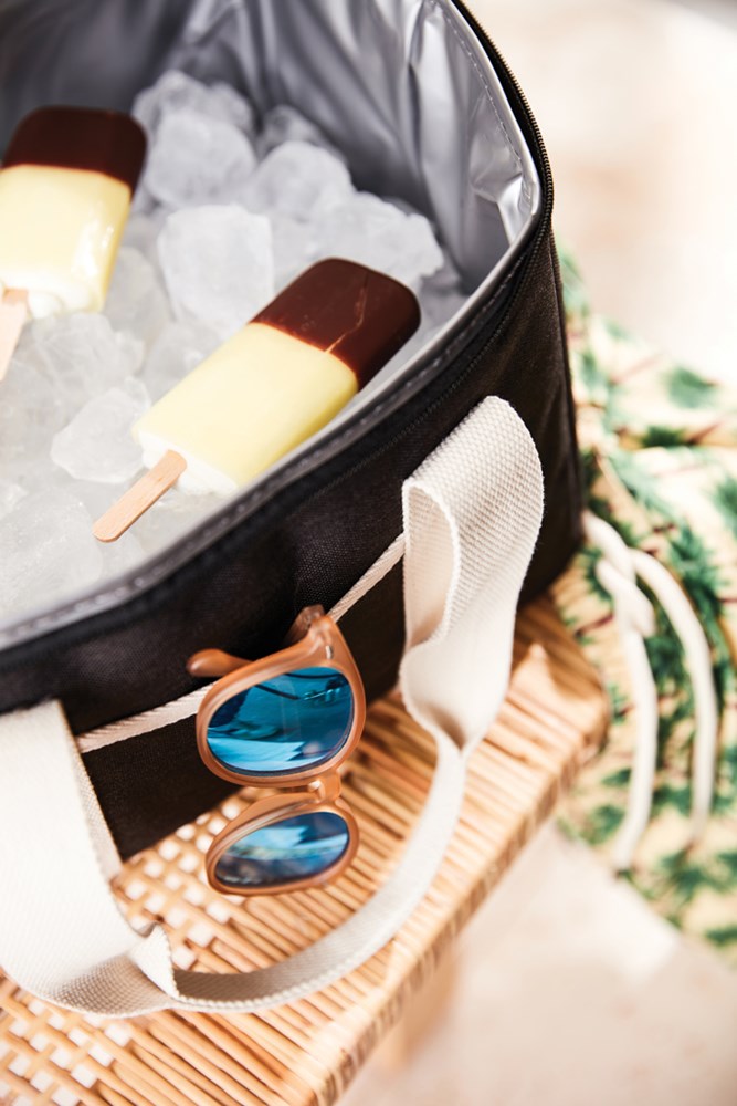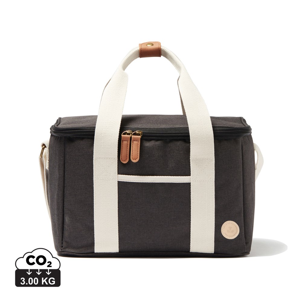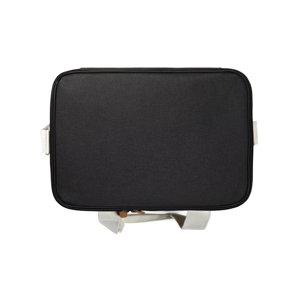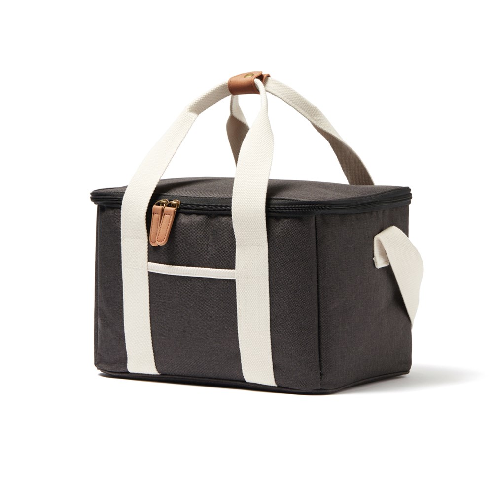 The ultimate cooler basket, mottled tone by tone with details in imitation leather and cotton. There is also a small compartment on the outside of the cooler bag, providing space for other items as well. The thick PEVA padding ensures that the cold is retained for a long time. It is also easy to clean and dry after use. Thanks to the adjustable shoulder strap and the double handle, you have several ways to carry the cooler basket.