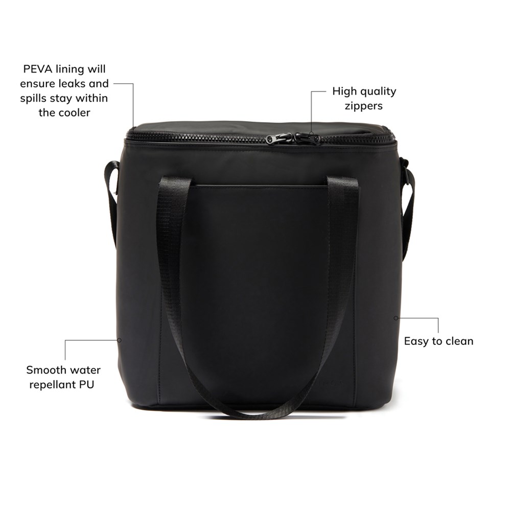 Minimalist cooler bag, made of water-repellent PU nubuck. Long handles and adjustable shoulder strap for optimal comfort. The cooler bag is insulated with extra thick foam. The lining of the bag is made of so-called PEVA which is easy to keep clean and fresh. A cooler bag perfect for both the beach and a wilderness adventure.