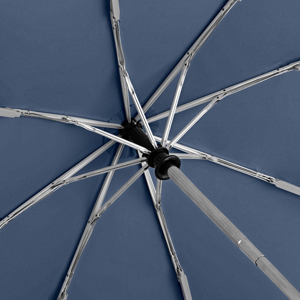 Trendy automatic open/close mini pocket umbrella in consistently uniform colouring Convenient automatic open/close function for quick opening and closing, high-quality Windproof PLUS system for maximum frame flexibility in stormy conditions, some colours are also available with waterSAVE® cover material - these are marked with the waterSAVE® label on the closing strap, chromed steel shaft, Soft-Touch handle in colour matching cover with silver push-button, elastic loop and promotional labelling option, sleeve with black piping. Also available as another mini pocket umbrella (art. 5565), as regular umbrella (art. 7560) and golf umbrella (art. 7580).