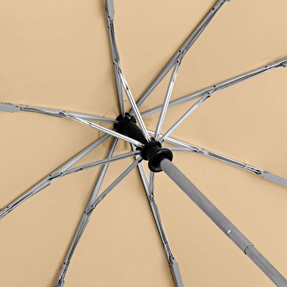 Trendy automatic open/close mini pocket umbrella in consistently uniform colouring Convenient automatic open/close function for quick opening and closing, high-quality Windproof PLUS system for maximum frame flexibility in stormy conditions, some colours are also available with waterSAVE® cover material - these are marked with the waterSAVE® label on the closing strap, chromed steel shaft, Soft-Touch handle in colour matching cover with silver push-button, elastic loop and promotional labelling option, sleeve with black piping. Also available as another mini pocket umbrella (art. 5565), as regular umbrella (art. 7560) and golf umbrella (art. 7580).
