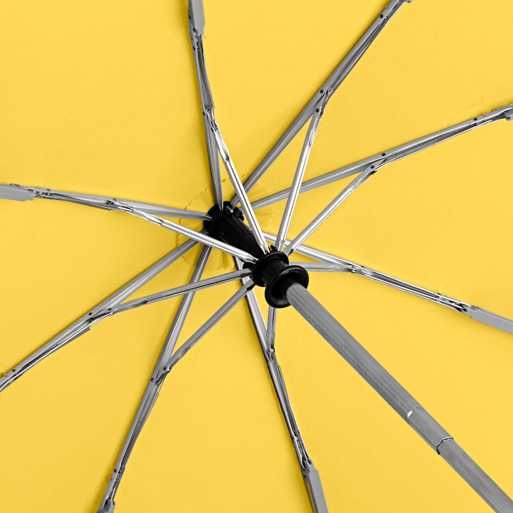 Trendy automatic open/close mini pocket umbrella in consistently uniform colouring Convenient automatic open/close function for quick opening and closing, high-quality Windproof PLUS system for maximum frame flexibility in stormy conditions, some colours are also available with waterSAVE® cover material - these are marked with the waterSAVE® label on the closing strap, chromed steel shaft, Soft-Touch handle in colour matching cover with silver push-button, elastic loop and promotional labelling option, sleeve with black piping. Also available as another mini pocket umbrella (art. 5565), as regular umbrella (art. 7560) and golf umbrella (art. 7580).