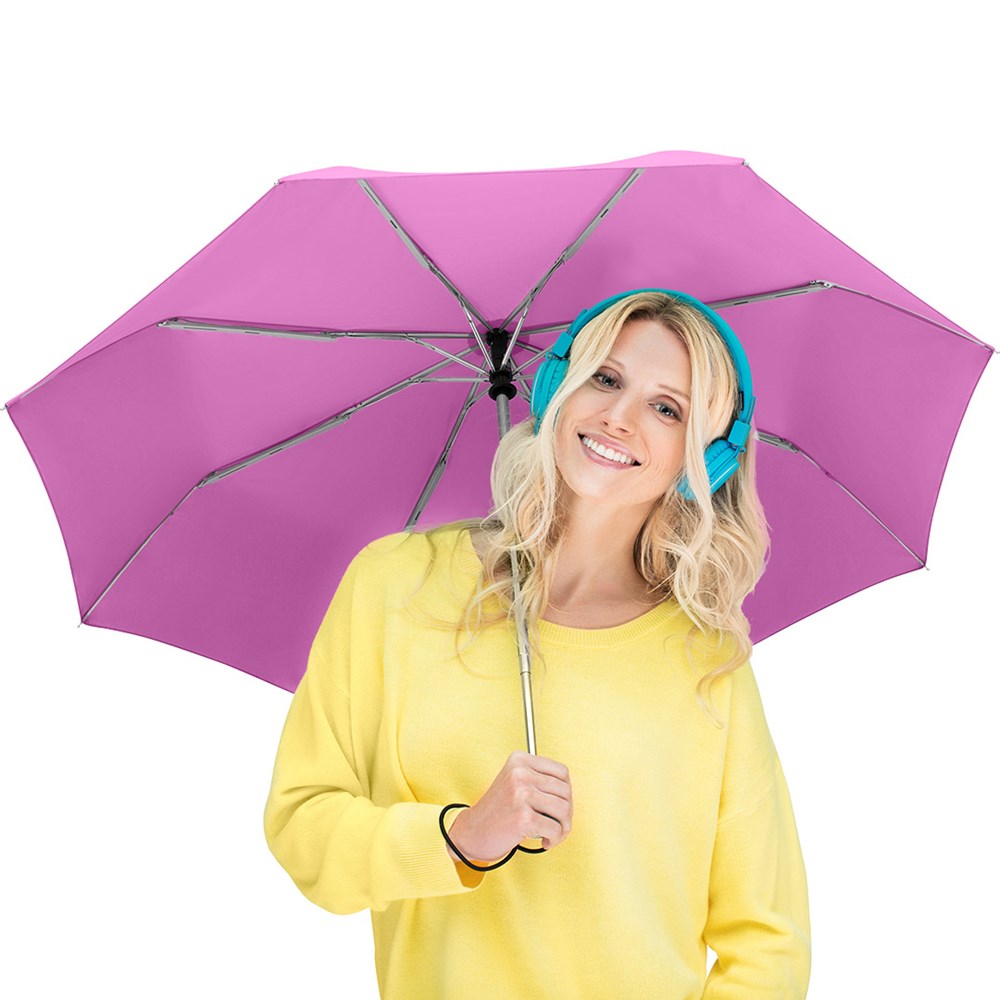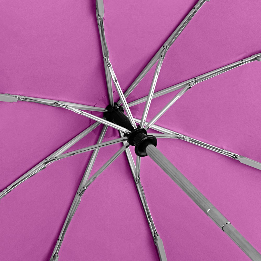 Trendy automatic open/close mini pocket umbrella in consistently uniform colouring Convenient automatic open/close function for quick opening and closing, high-quality Windproof PLUS system for maximum frame flexibility in stormy conditions, some colours are also available with waterSAVE® cover material - these are marked with the waterSAVE® label on the closing strap, chromed steel shaft, Soft-Touch handle in colour matching cover with silver push-button, elastic loop and promotional labelling option, sleeve with black piping. Also available as another mini pocket umbrella (art. 5565), as regular umbrella (art. 7560) and golf umbrella (art. 7580).