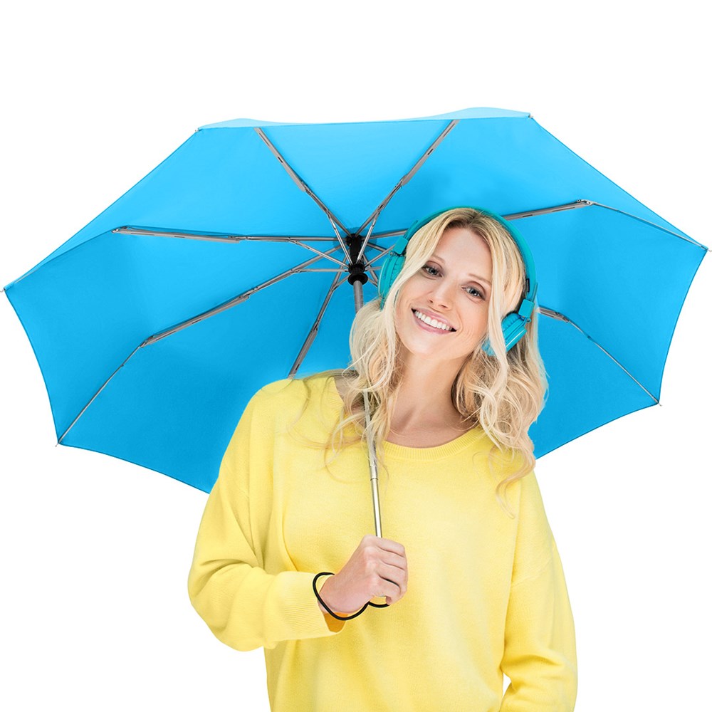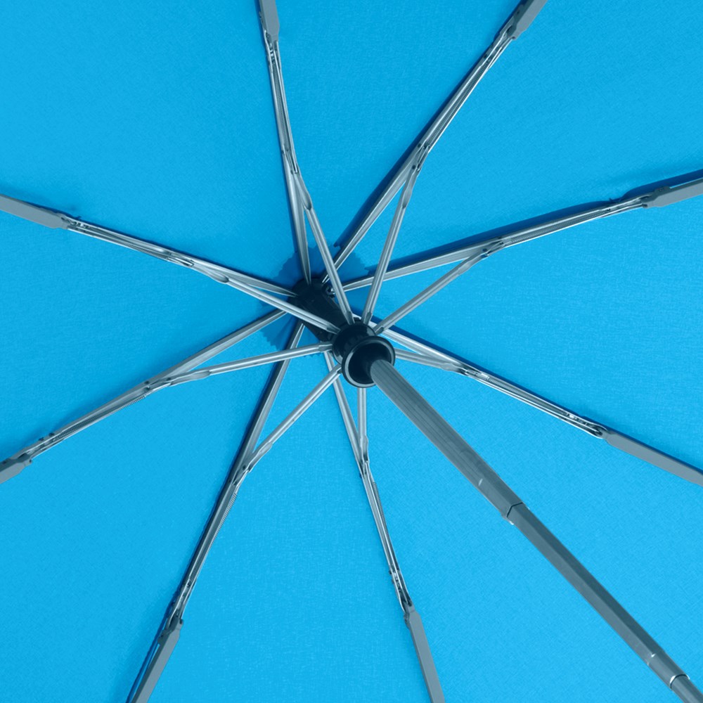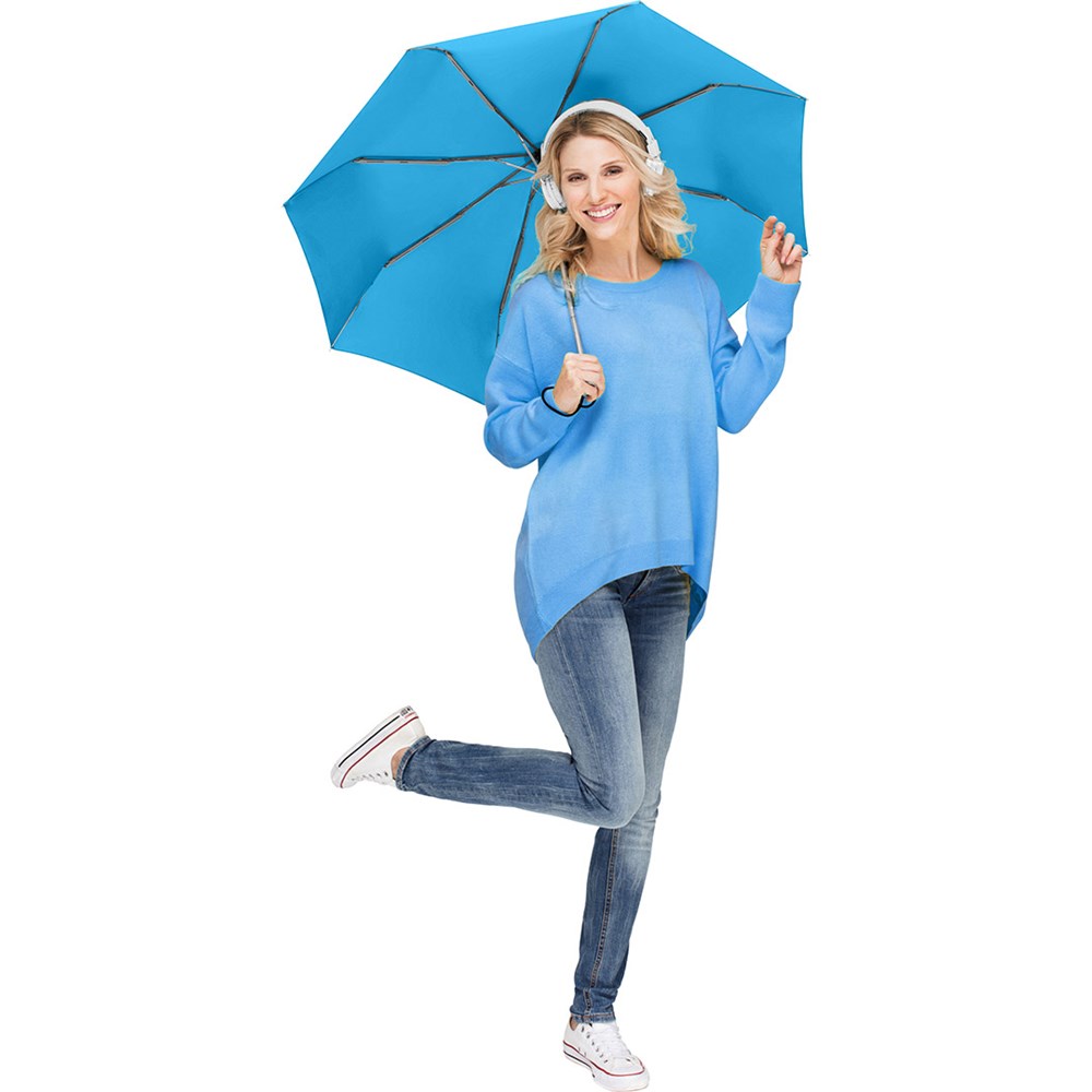 Trendy automatic open/close mini pocket umbrella in consistently uniform colouring Convenient automatic open/close function for quick opening and closing, high-quality Windproof PLUS system for maximum frame flexibility in stormy conditions, some colours are also available with waterSAVE® cover material - these are marked with the waterSAVE® label on the closing strap, chromed steel shaft, Soft-Touch handle in colour matching cover with silver push-button, elastic loop and promotional labelling option, sleeve with black piping. Also available as another mini pocket umbrella (art. 5565), as regular umbrella (art. 7560) and golf umbrella (art. 7580).