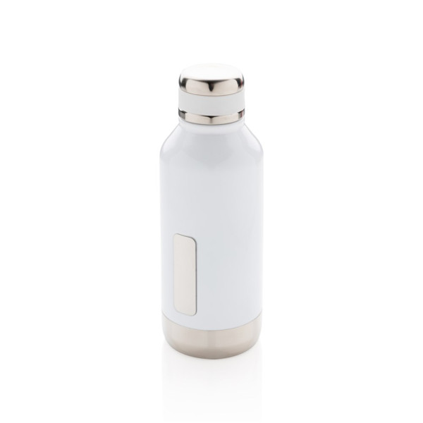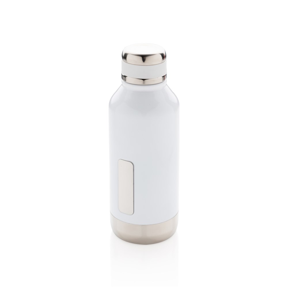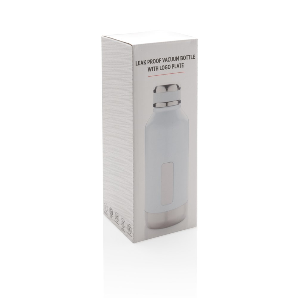 Leakproof vacuum insulated bottle with twist off lid. With unique logo position on the front. 304 stainless steel inner and 201 stainless steel outer keeps your drinks hot 5h and cold 15h. Content: 500ml.