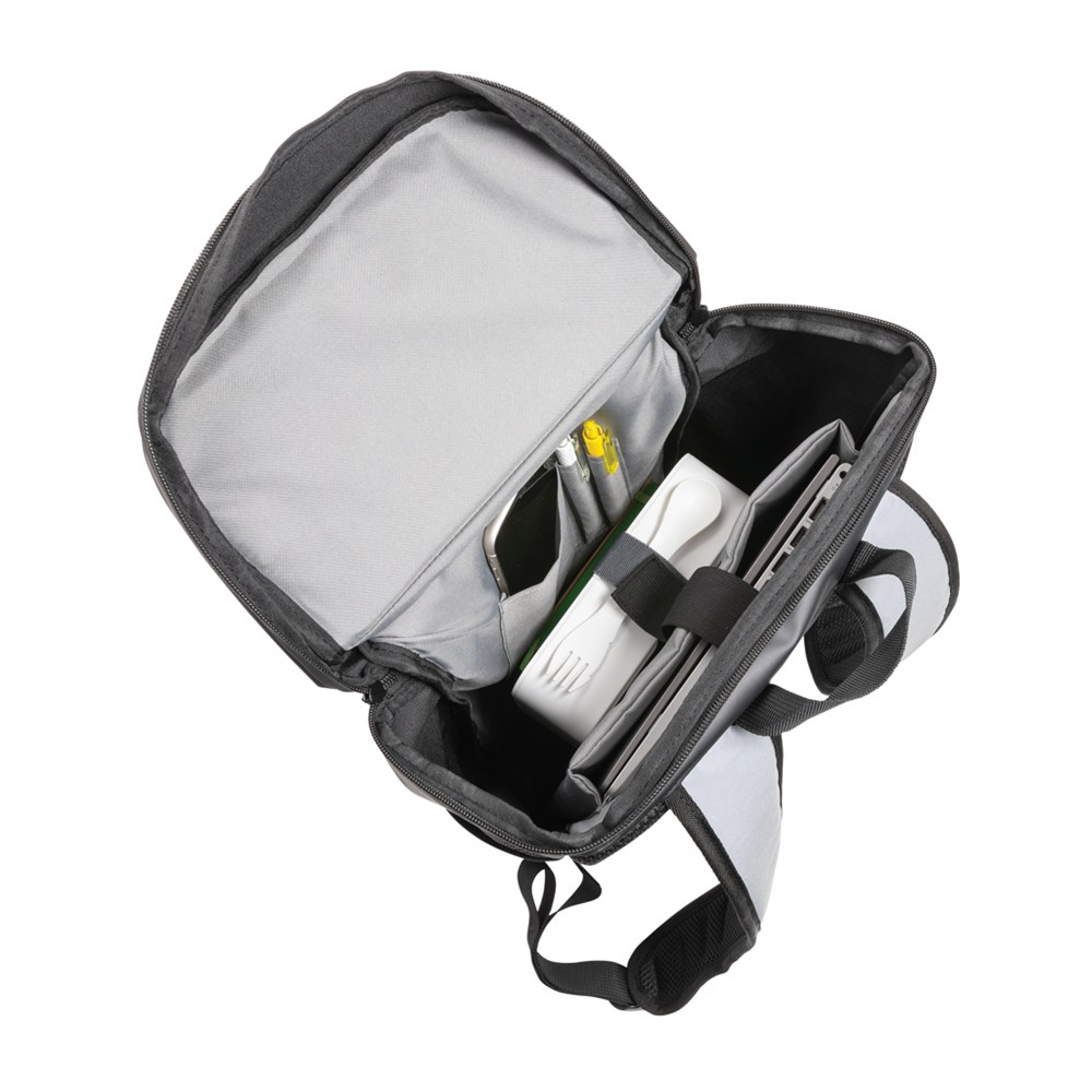 This high visibility easy access laptop backpack is the ideal backpack to carry every day and provides extra safety at night thanks to the big surface of reflective material which ensures you are visible to traffic. The backpack has all the space you'll need in a day bag or carry-on. The roomy main compartment has a 15.6" laptop pocket and a small pocket to quickly grab your phone or keys. The big zipper opening makes it easy to see what's in your backpack at a glance. Water resistant. The reflectivity has been tested in accordance with EN 13356:2001.