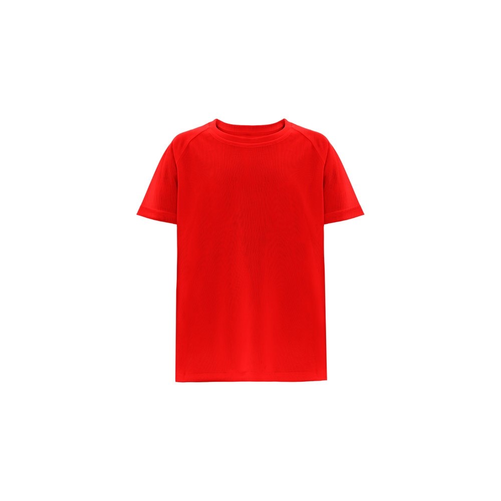 Children's technical T-shirt (150 g/m²) in 100% polyester pique mesh. Regular cut t-shirt with breathable fabric and raglan sleeves. Double stitching on sleeves and bottom. Sizes: 4, 6, 8, 10, 12