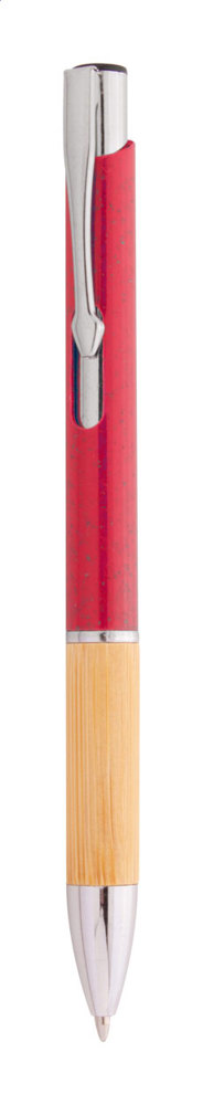 Ecological wheat straw plastic ballpoint pen with bamboo grip and metal parts. With blue refill.