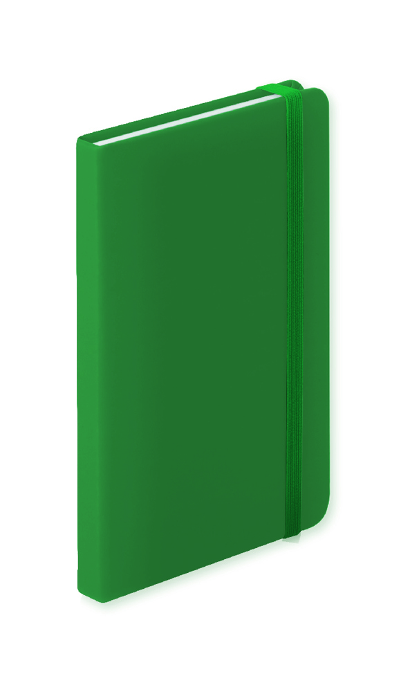 PU leather covered notebook with 100 lined sheets and rubber strap. more